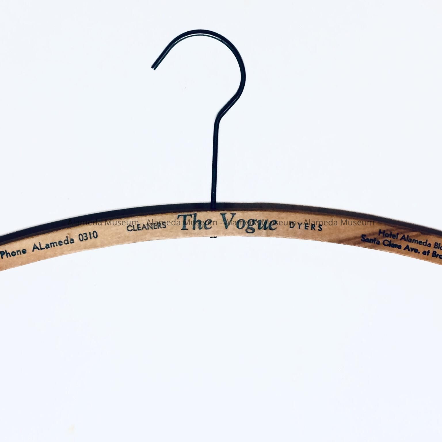 A HANGER ADVERTISING THE VOGUE CLEANERS AND DYERS, HOTEL ALAMEDA BLDG, SANTA CLARA AVENUE AT BROADWAY , ALAMEDA, CALIF.; TELEPHONE AL-0310.