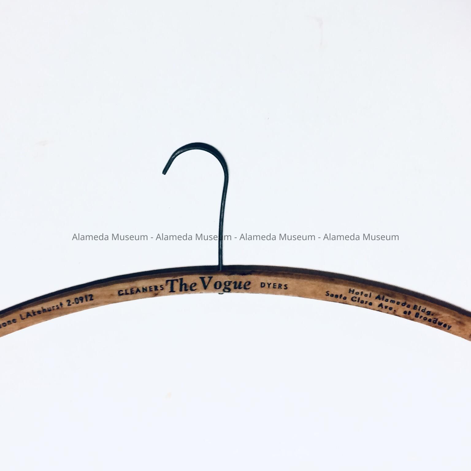 A HANGER ADVERTISING THE VOGUE CLEANERS AND DYERS, HOTEL ALAMEDA BLDG, SANTA CLARA AVENUE AND BROADWAY; TELEPHONE LA-2-0912.