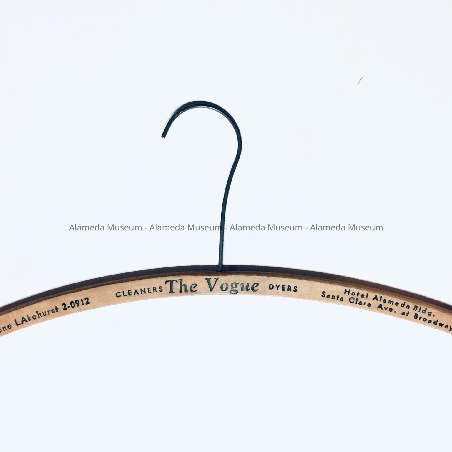 HISTORY OF OBJECT: A HANGER ADVERTISING THE VOGUE CLEANERS AND DYERS, HOTEL ALAMEDA BLDG., SANTA CLARA AVENUE AT BROADWAY, ALAMEDA. TELEPHONE: LAKEHURST 2-0912.