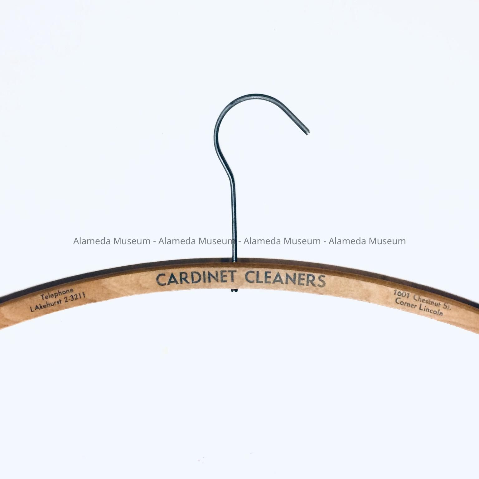 A HANGER FROM THE CARDINET CLEANERS, 1601 CHESTNUT STREET, ALAMEDA; TELEPHONE LA 2-3211.
