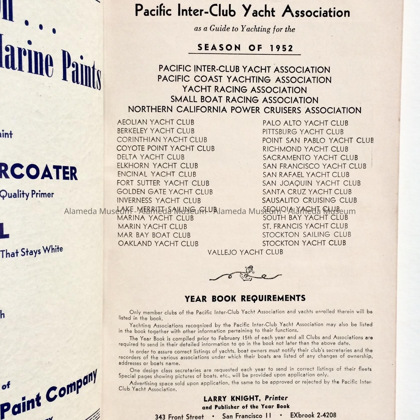 Yachting Year Book, 1952, Pacific Inter-Club Yacht Association of Northern CaliforniaEntry/Object ID