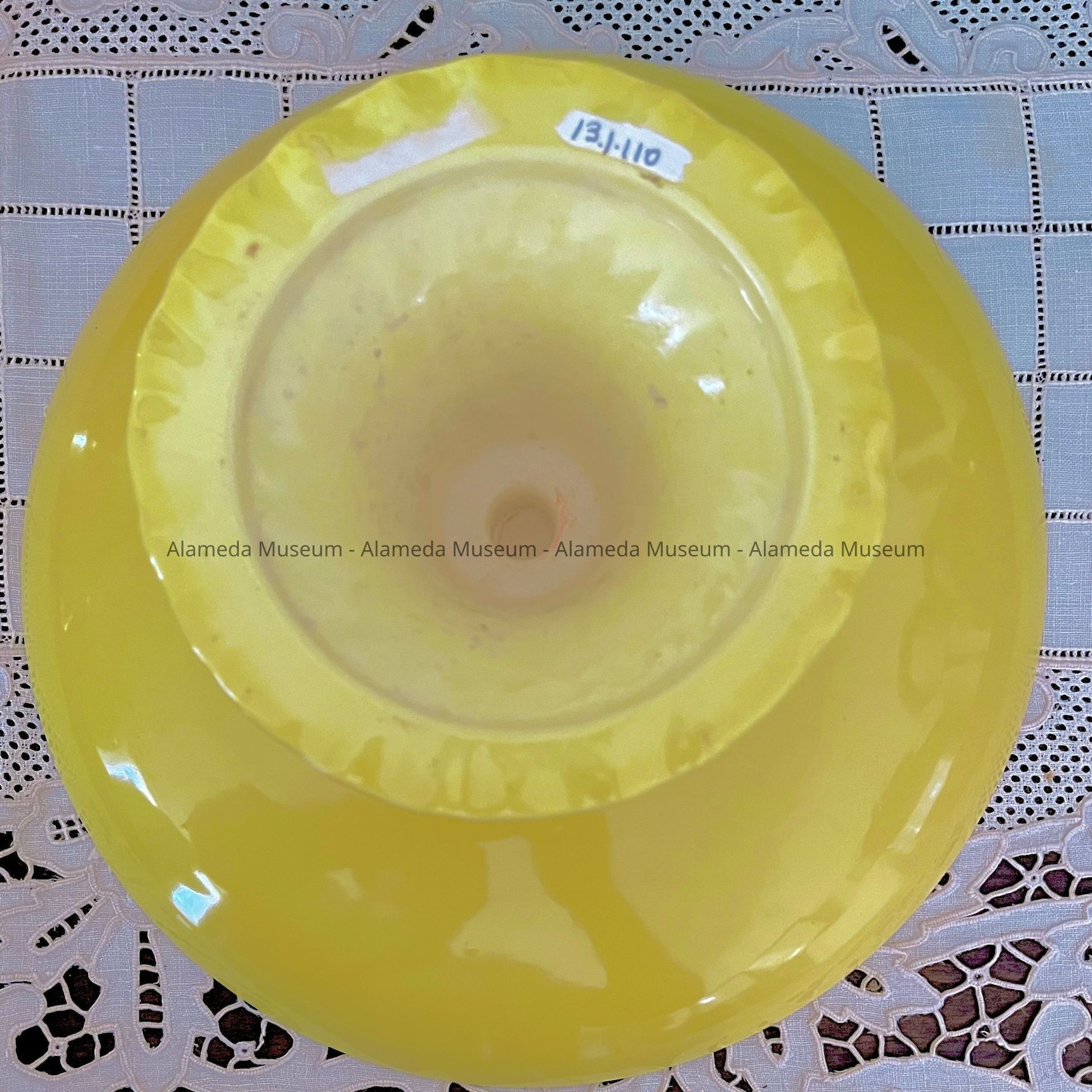 Yellow compote dish with fluted pedestal base, c. 1930sEntry/Object ID
