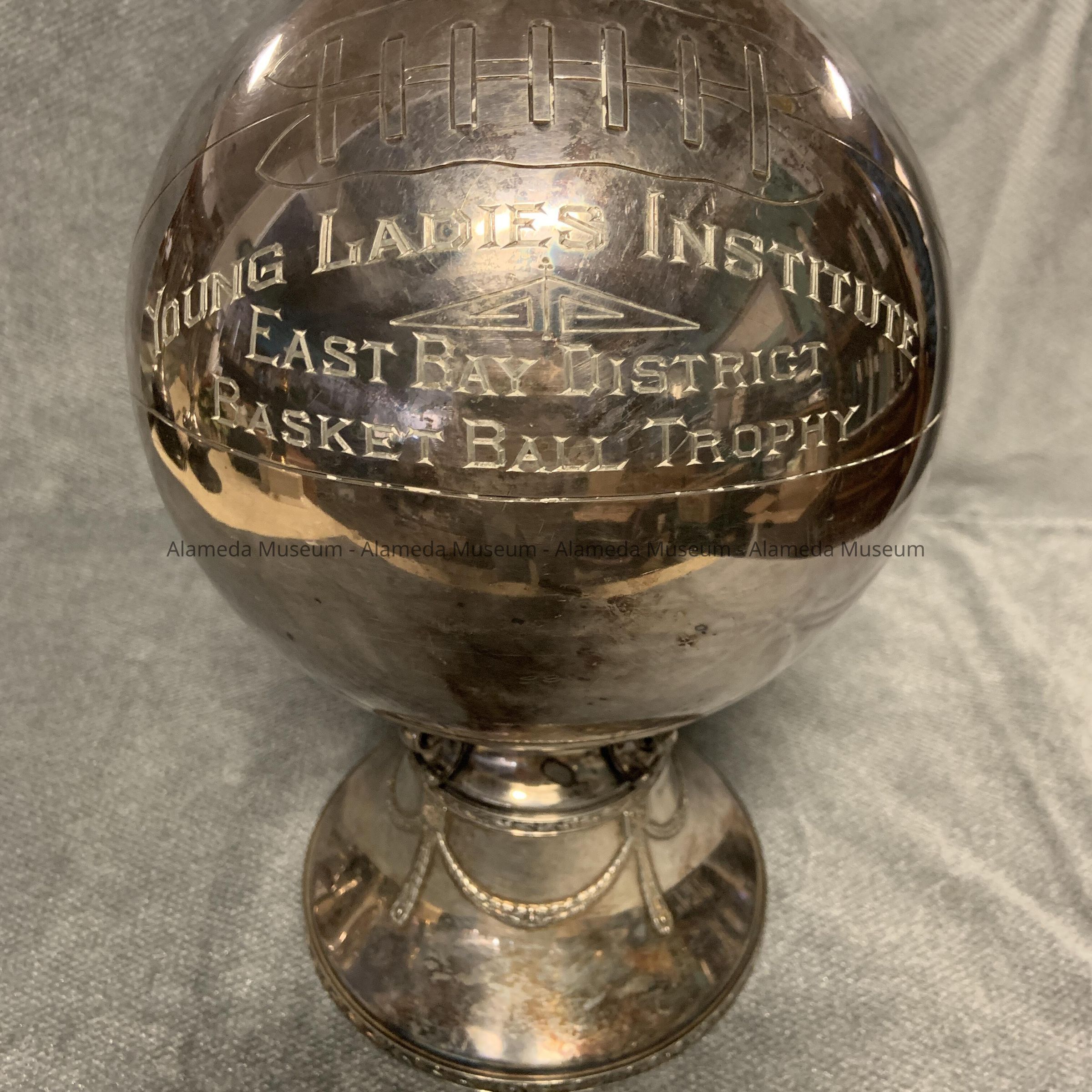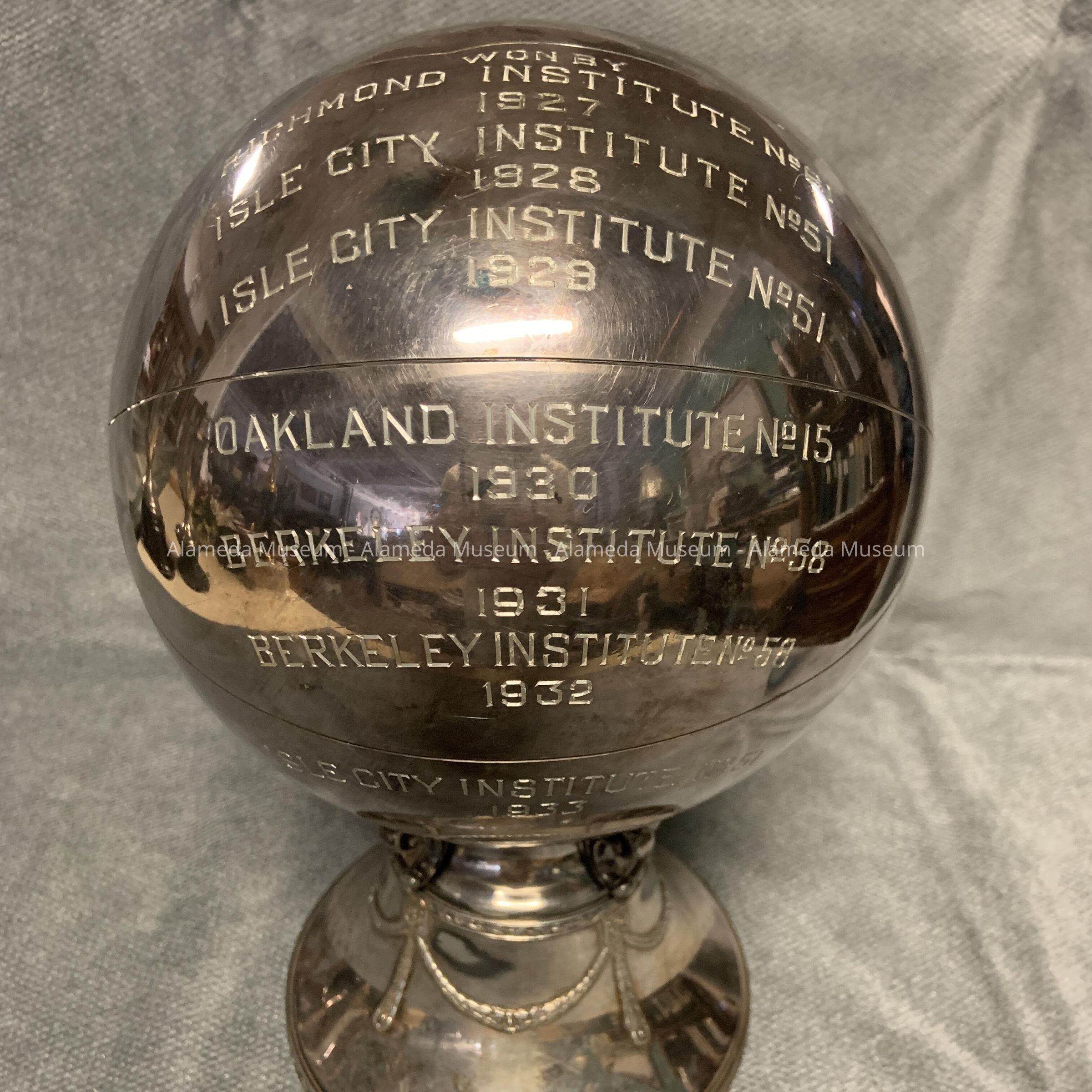 YLI, EAST BAY DISTRICT BASKETBALL TROPHY. "TRAVELING" TROPHY FIRST WON BY THE RICHMOND INSTITUTE #61, AND ULTIMATELY WON BY THE YLI #33.