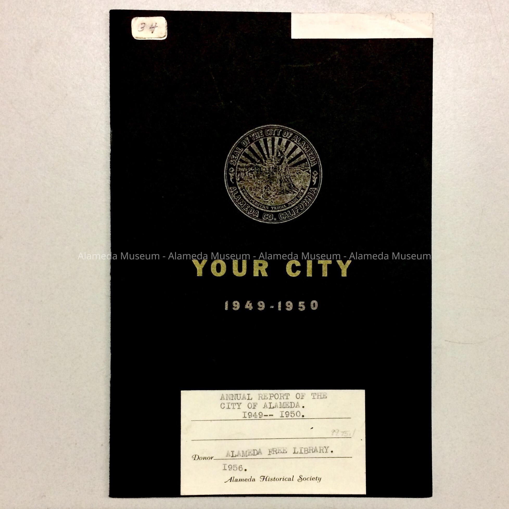 History: Annual Report of the City of Alameda Fiscal Year 1949-50. Publication is illustrated and gives statistics concerning the City. Object given to the Alameda Historical Museum, numbered 34, in 1956 and never catalogued.