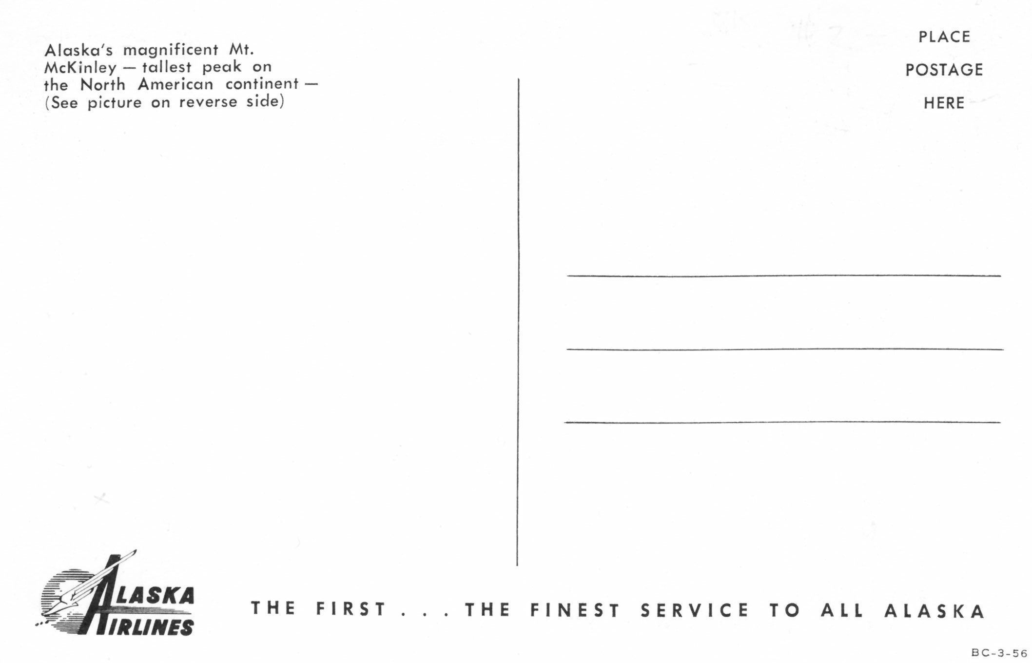 Postcard: Alaska's magnificent Mt. McKinleyDescription