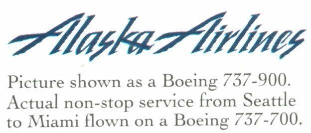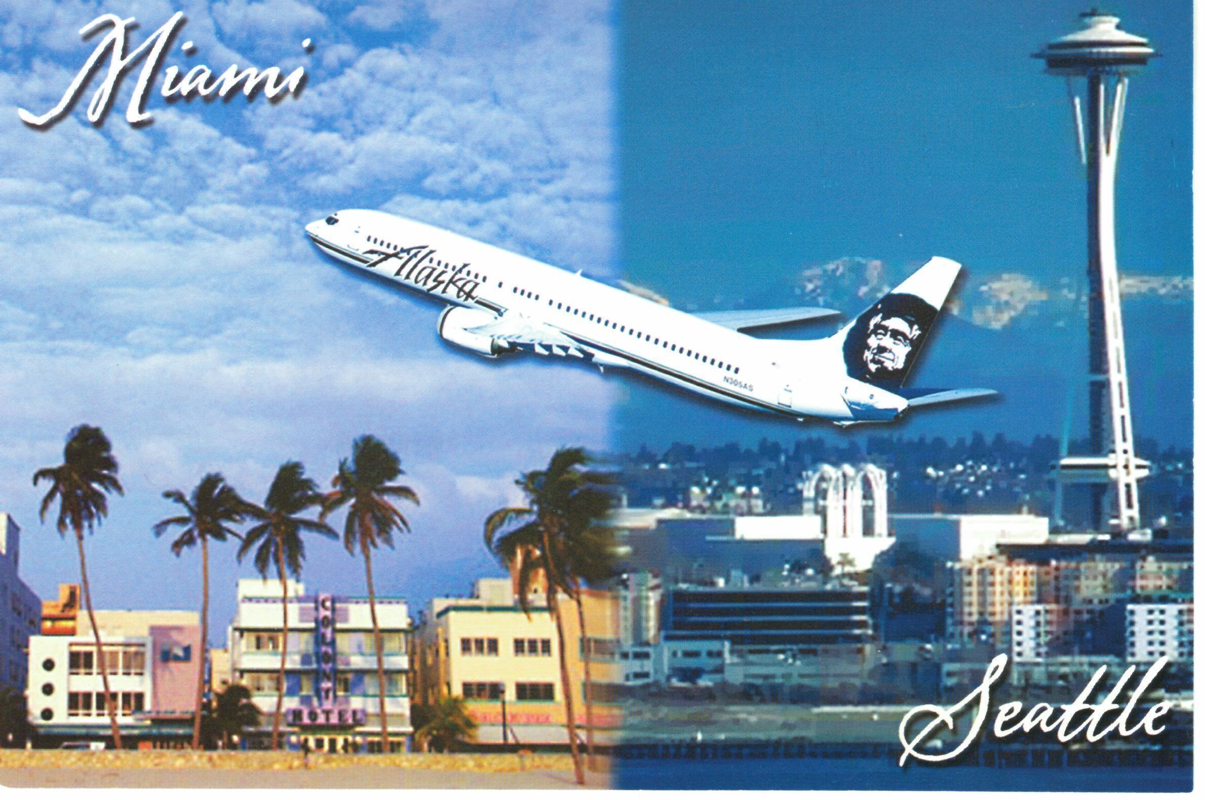 Picture shown as a Boeing 737-900. Actual non-stop service from Seattle to Miami flown on a Boeing 737-700.Collection