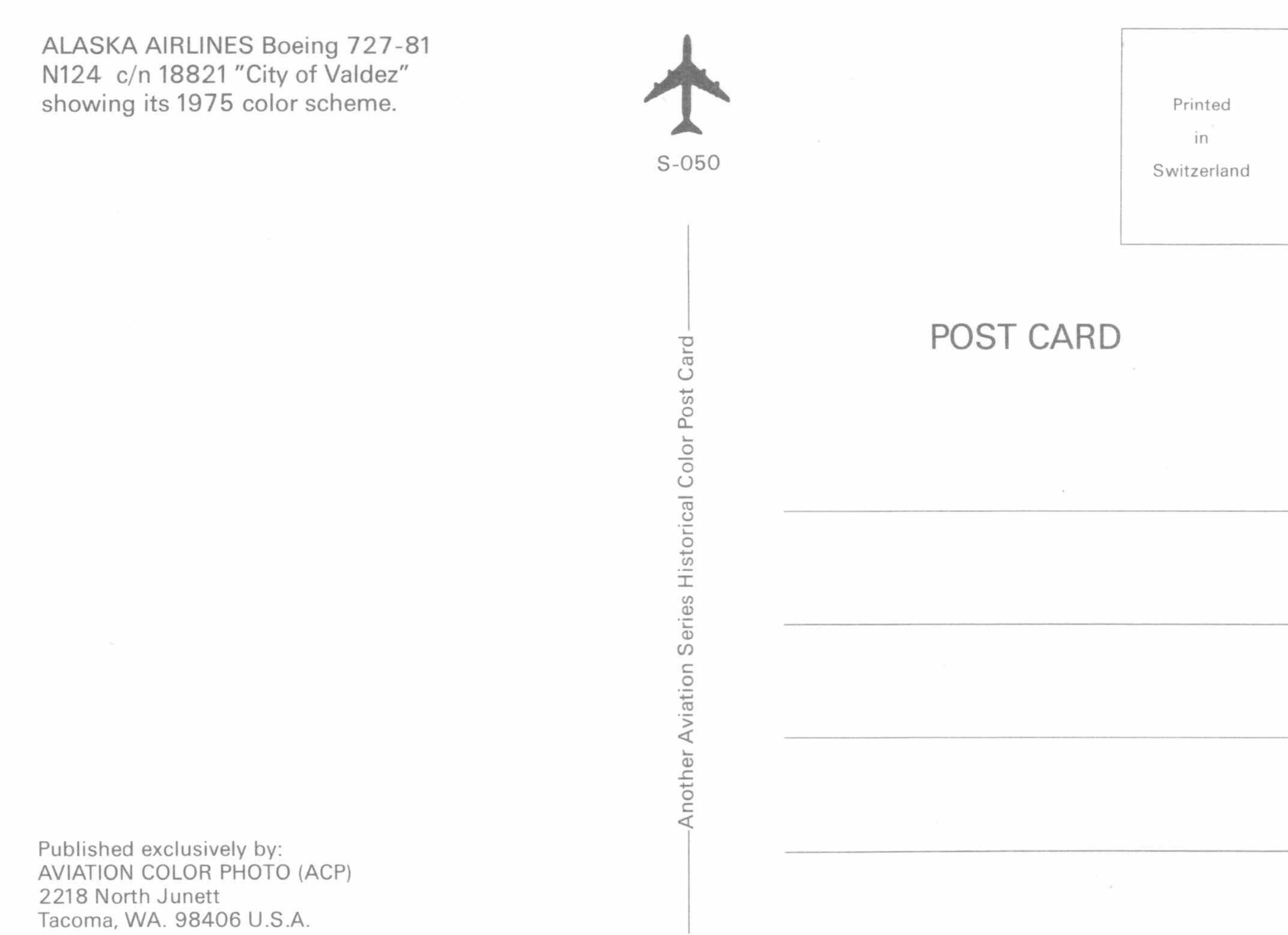 Alaska Airlines Boeing 727-81 N124 c/n 18821 "City of Valdez"Subject