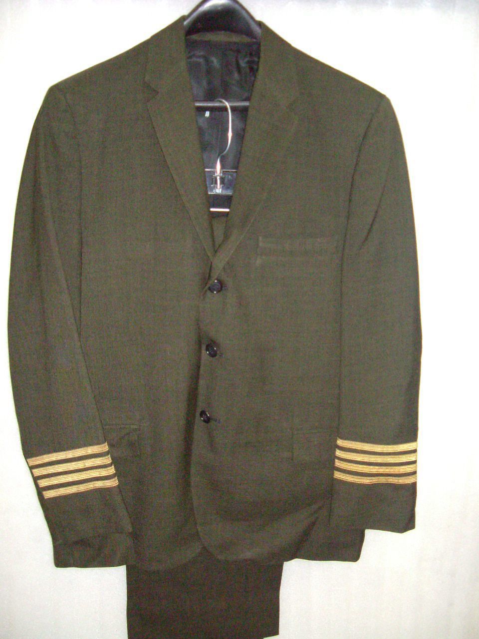 Army green male jacket with four yellow stripes on cuff and slacksCataloged By