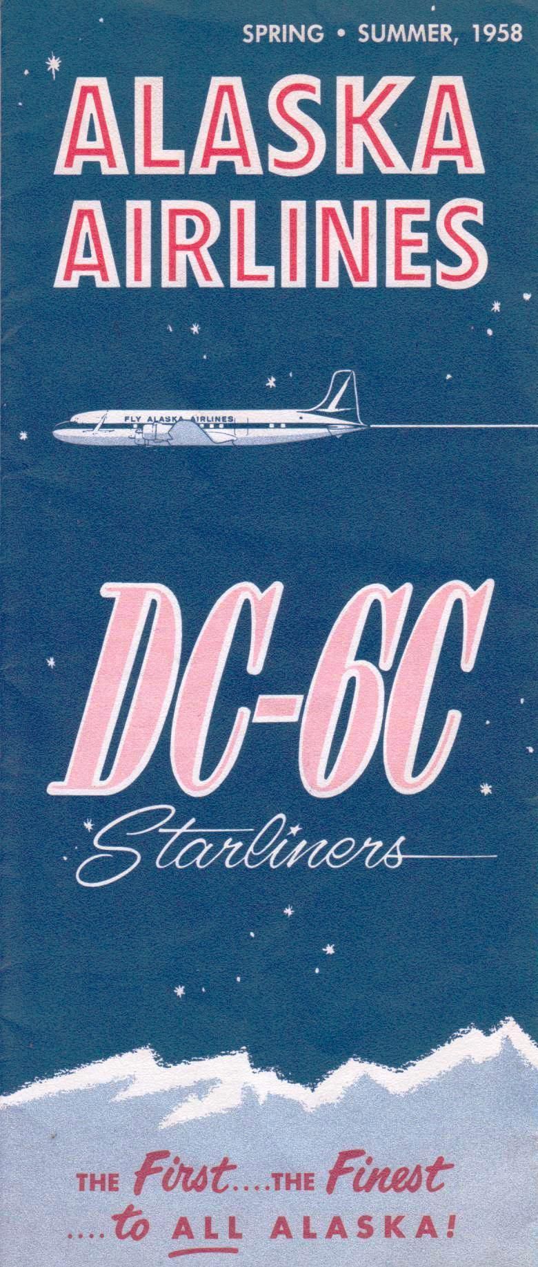 Spr-Sum 1958 Alaska Airlines Timetable; DC-6C Starliners; "The First.. The Finest.. to ALL Alaska!"Description