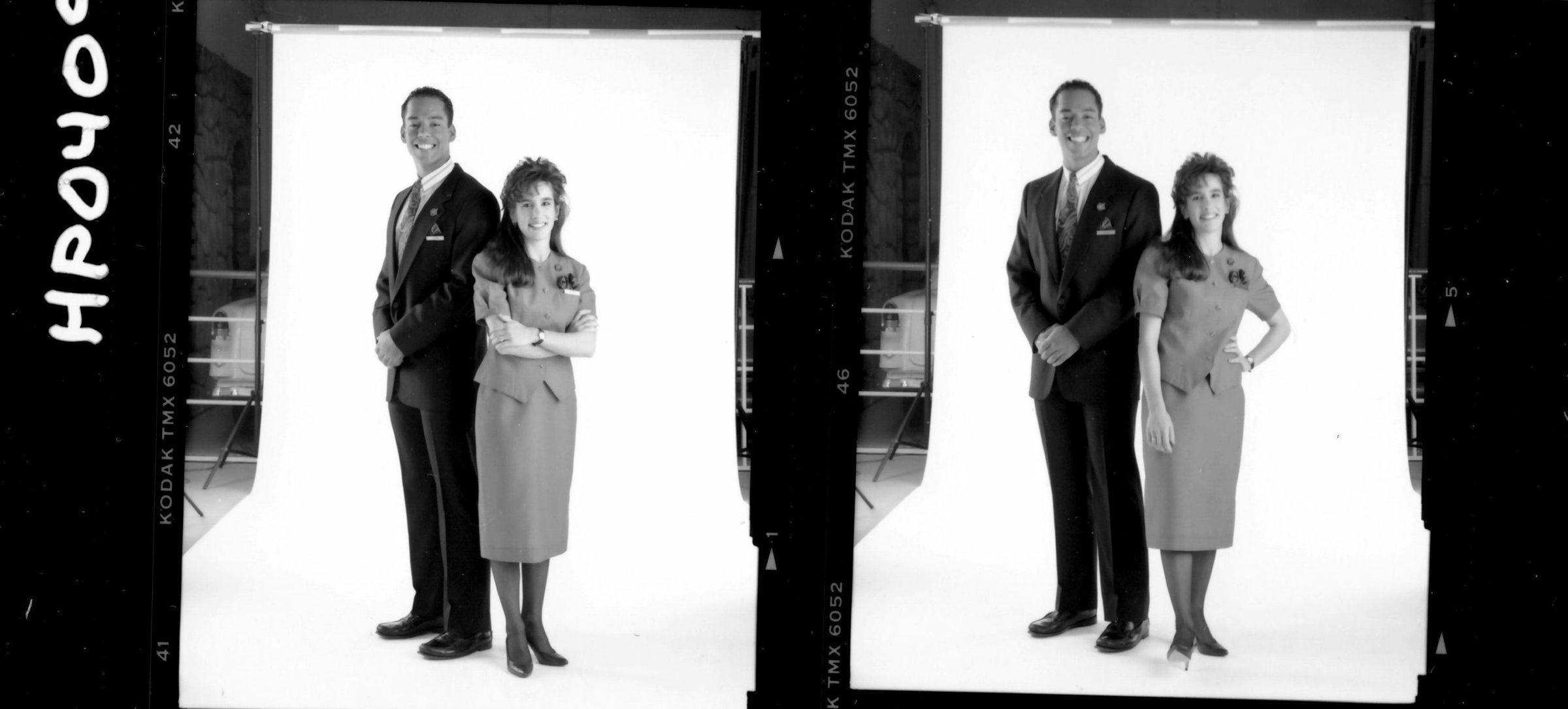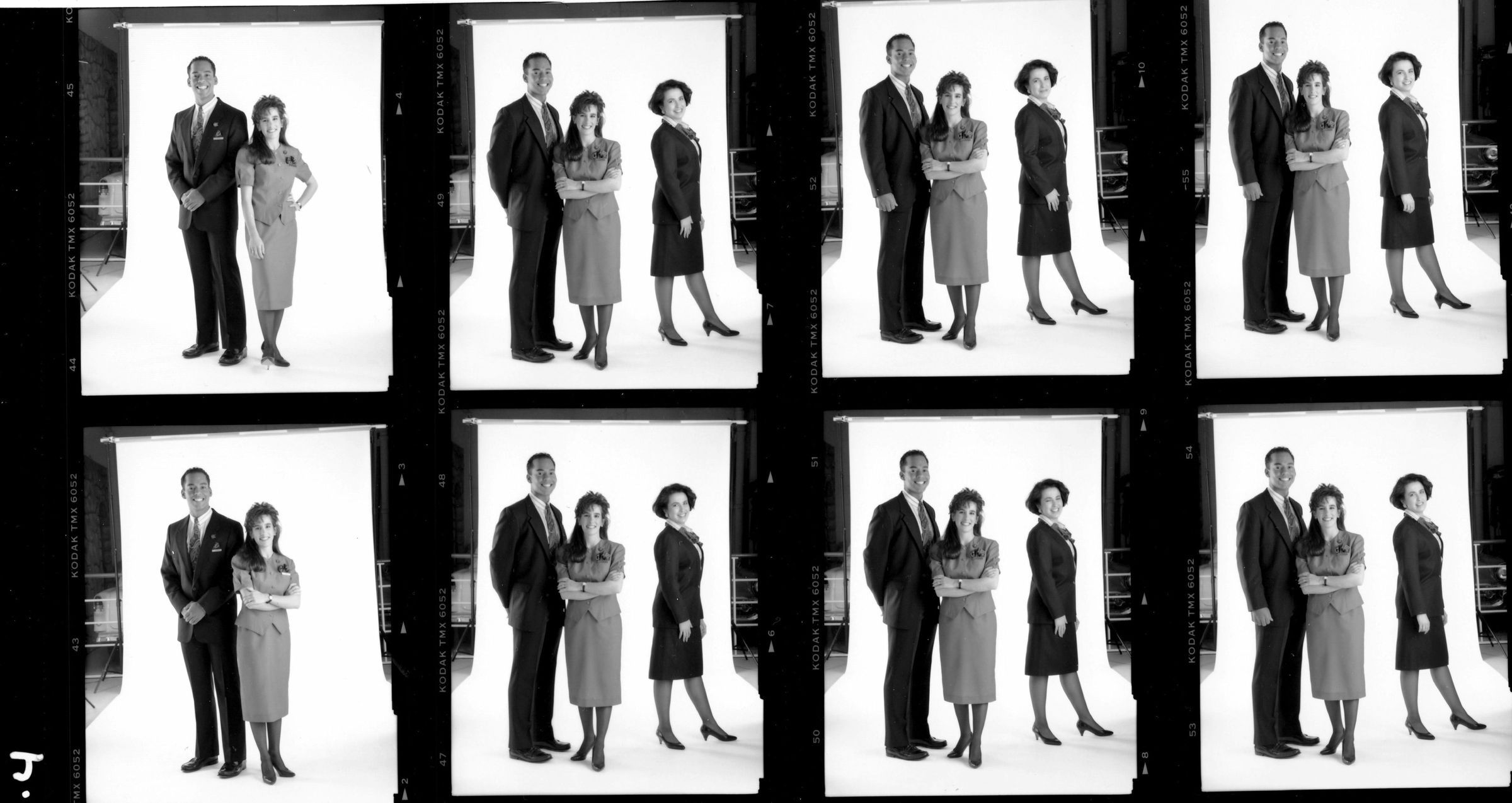 B&W contact sheet of Flight Attendant photo shoot; uniforms, publicity photos; early 90sCollection
