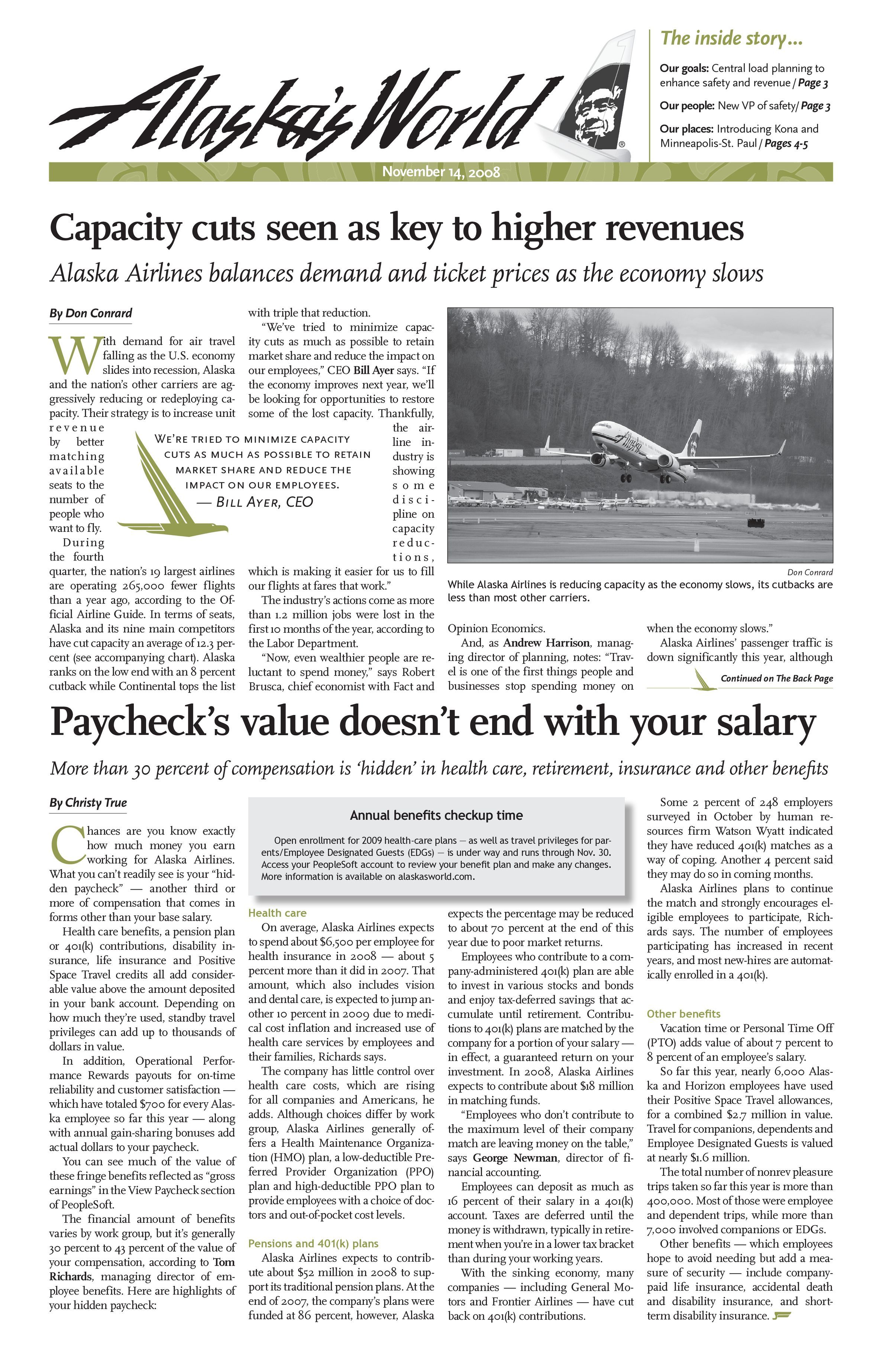 Capacity cuts seen as key to higher revenues - Alaska Airlines balances demand and ticket prices as the economy slowsDescription