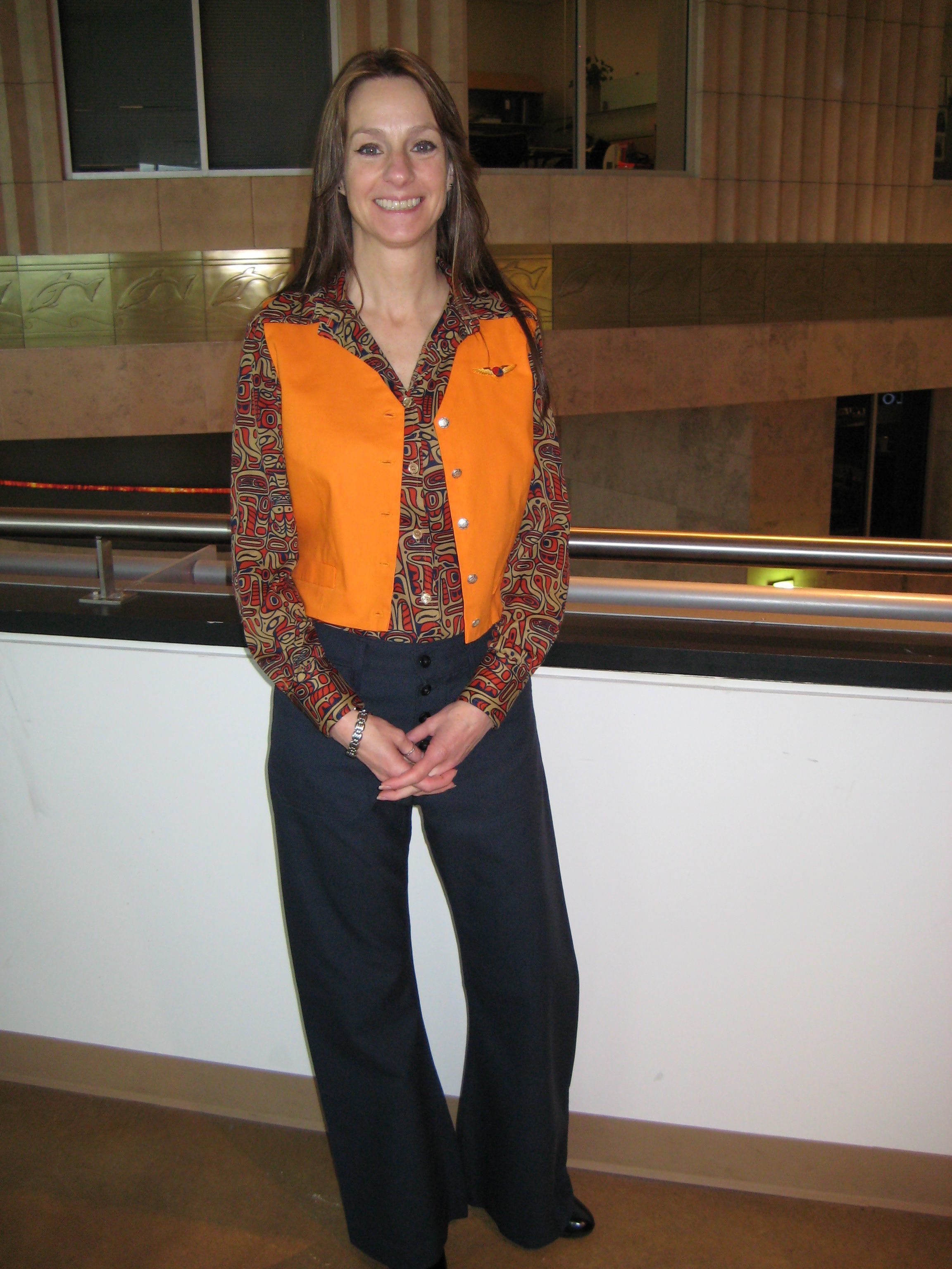 Flight Attendant Bell Bottom and Orange VestDescription