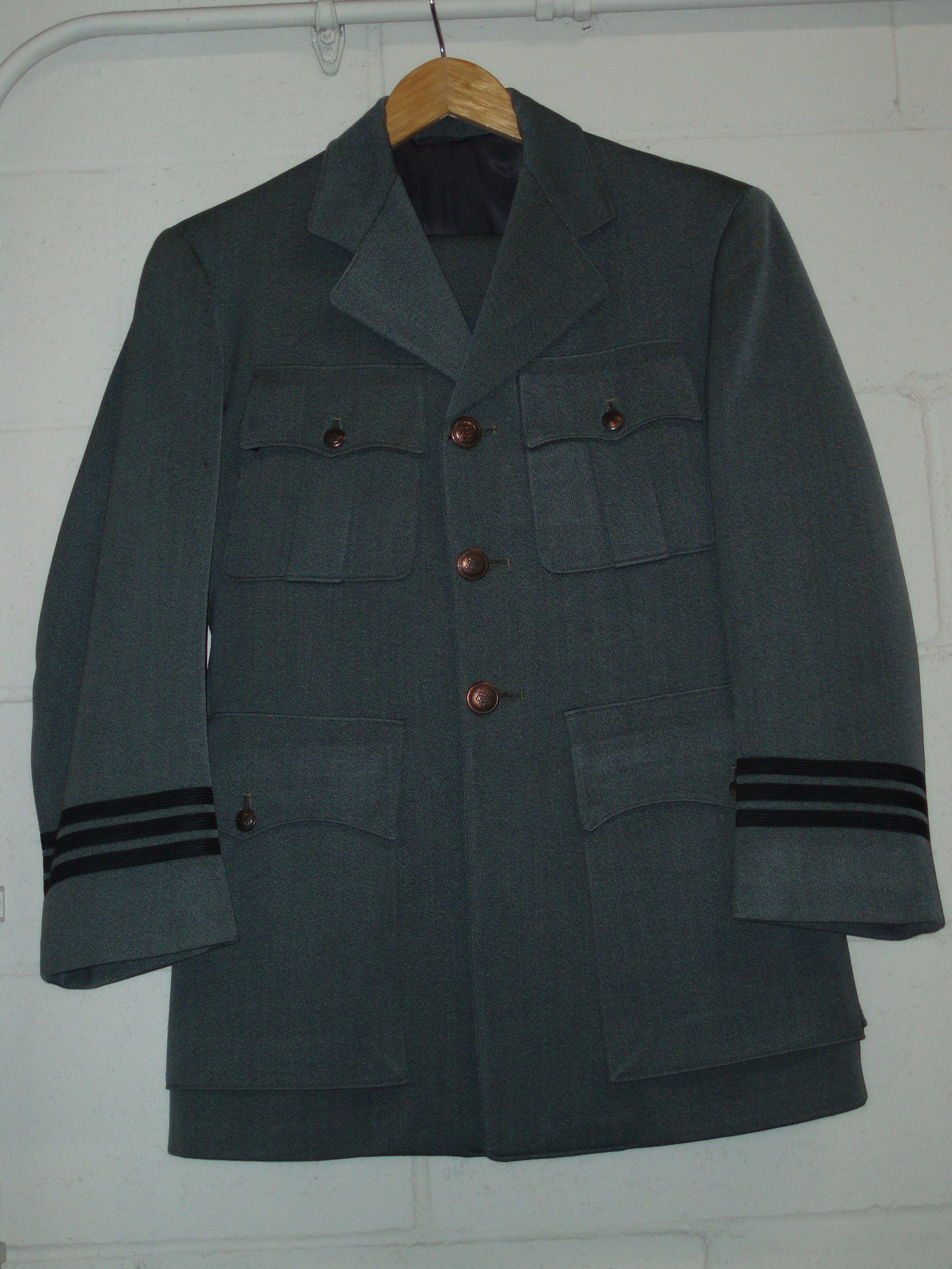 Men's pilot uniform jacket and trousers. Grey with black stripes on sleeves. Para-military in look with brass" US Air Mail" buttons. Belonged to Captain Don Fox.Cataloged By