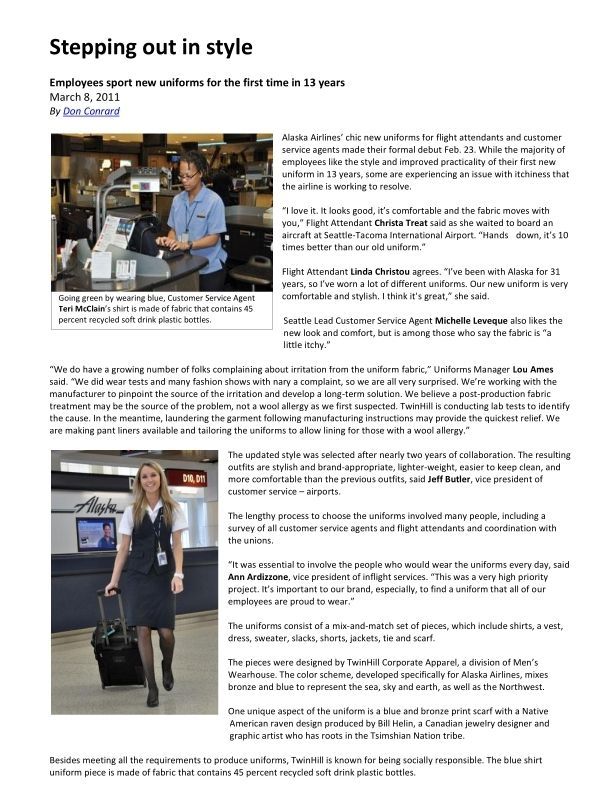 Internal article on new FA uniforms - March 8, 2011Cataloged By