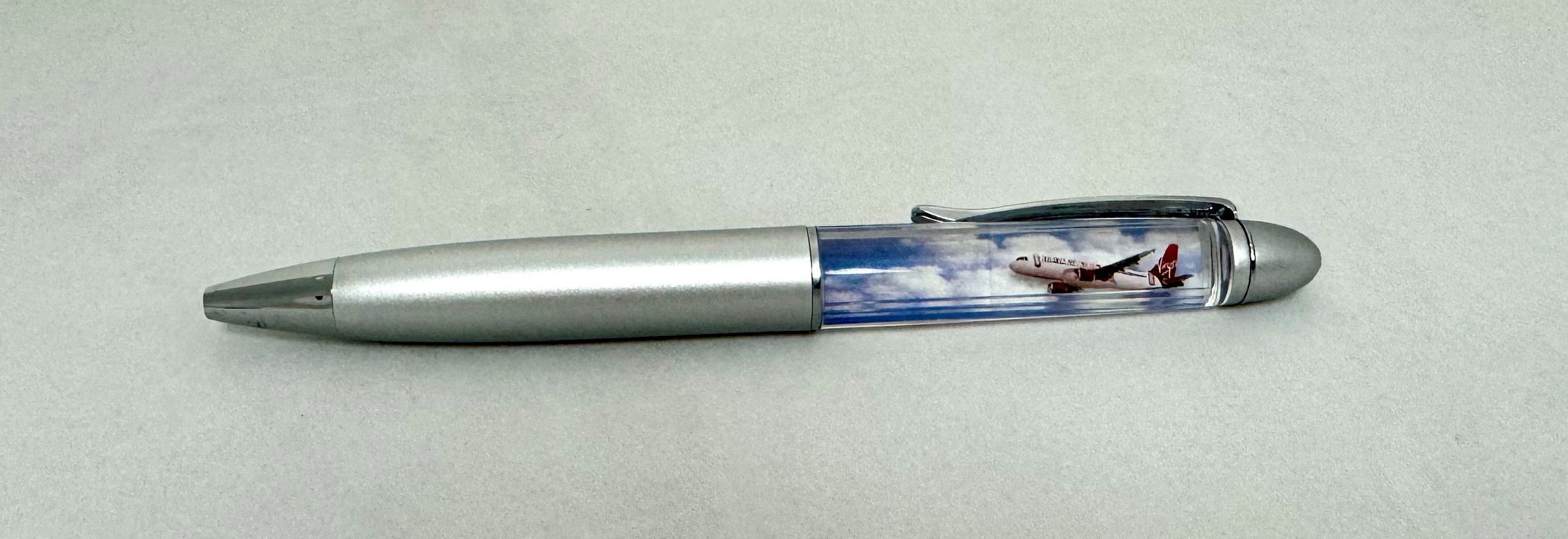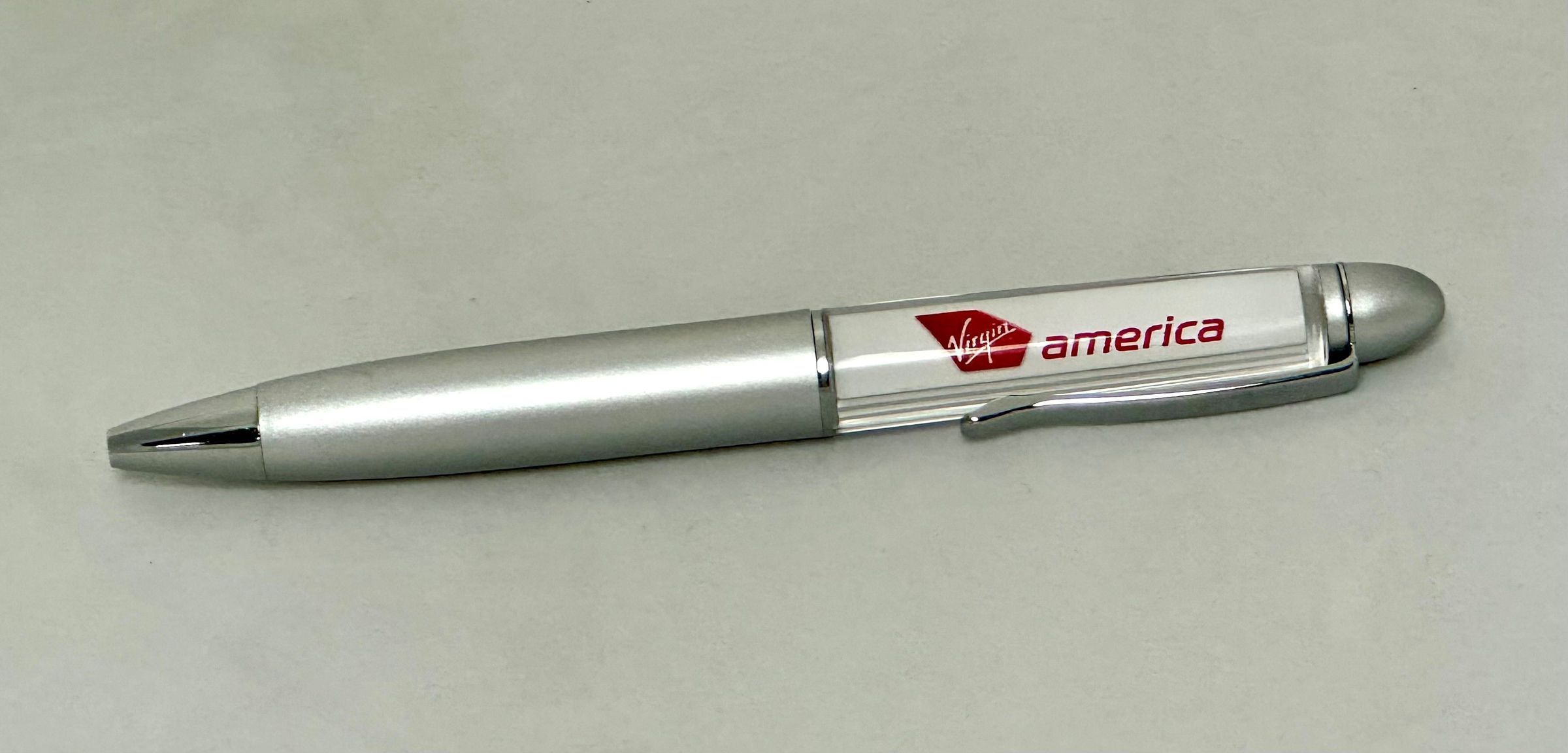 Virgin America - Ink Pen with Floating Aircraft graphic. Logo on other side.Use