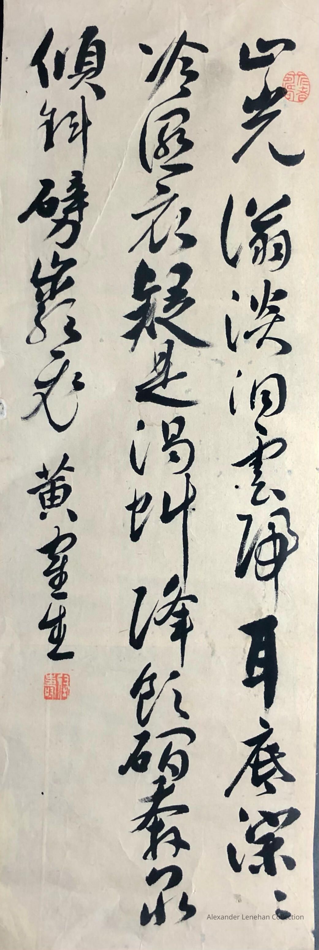 Partial translation (2nd line) :Charmed/lost at the balcony with red lantern and green wine*: lost in the fun of night life.