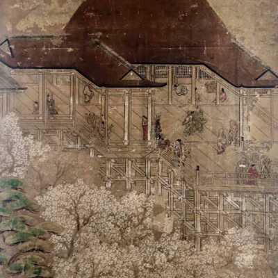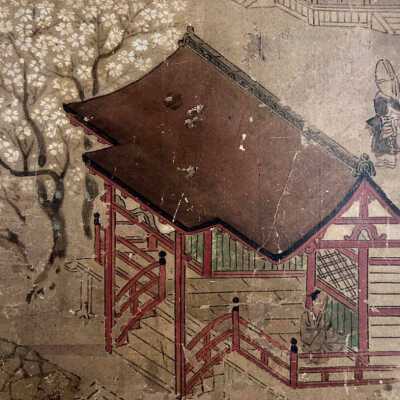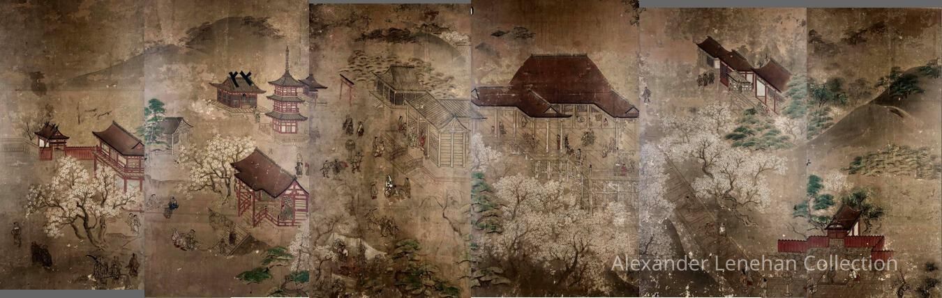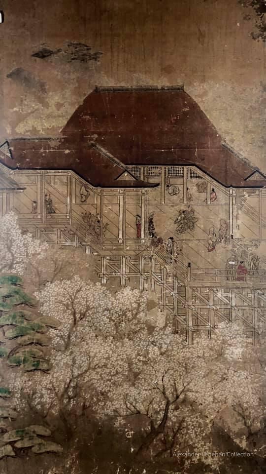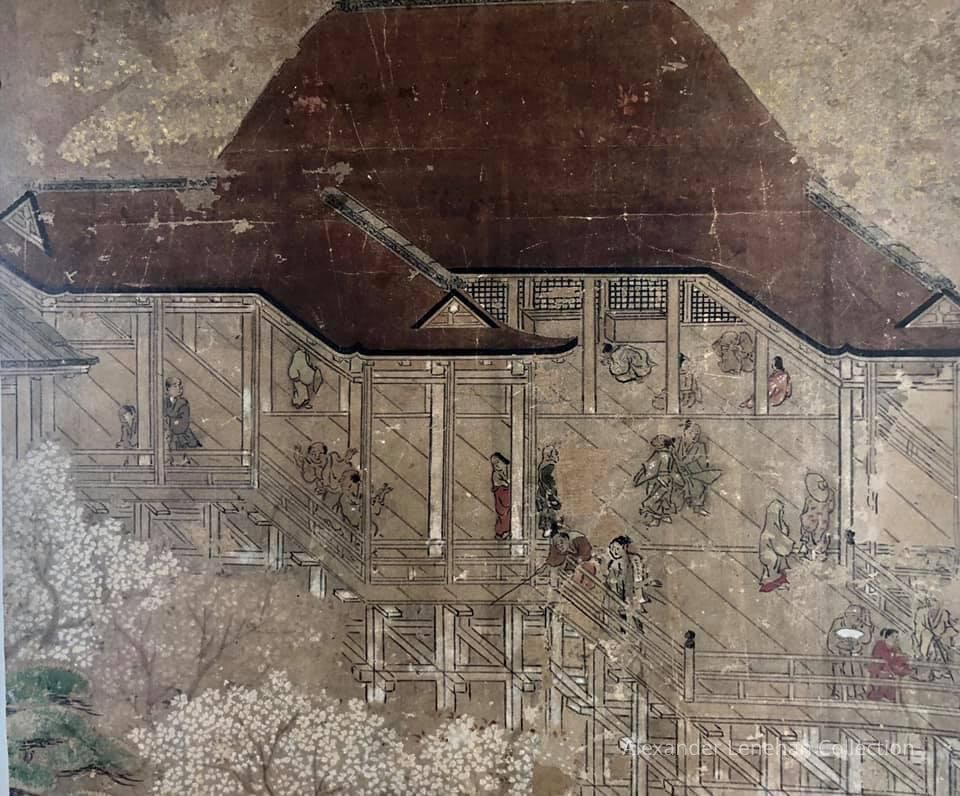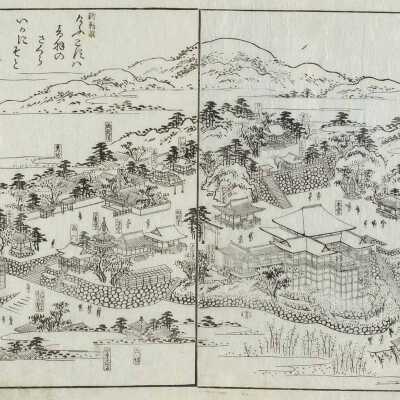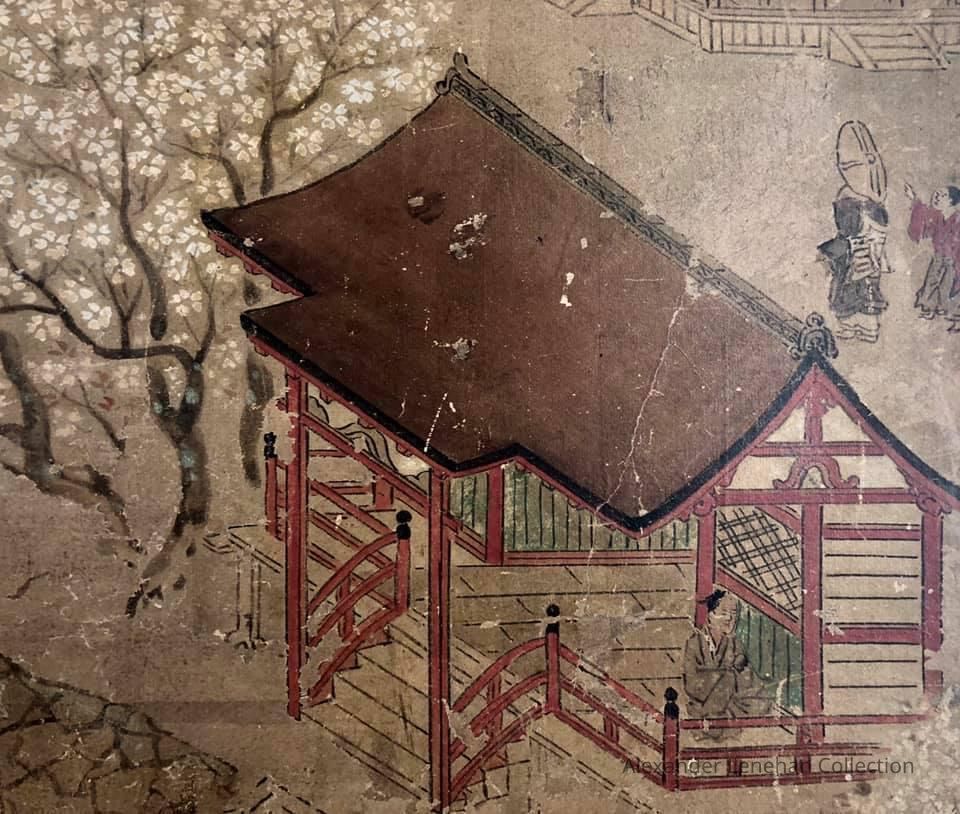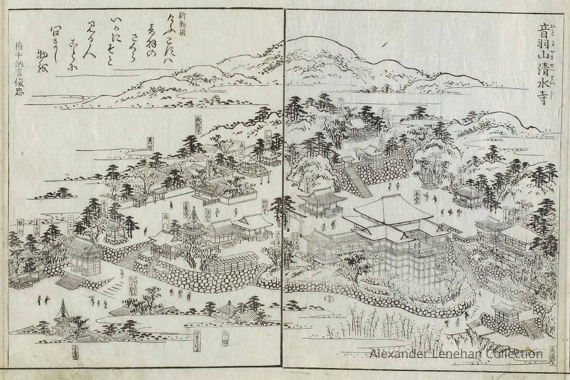 Subsidiary buildings to the east of the steep steps next to the Main Hall, with the distant view of the Otowayama Mountain in the background.