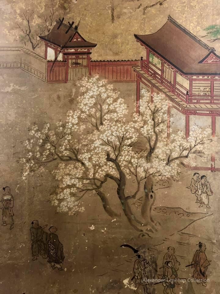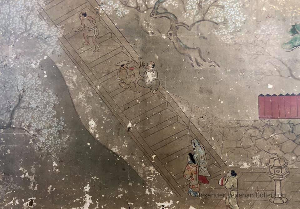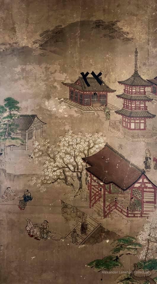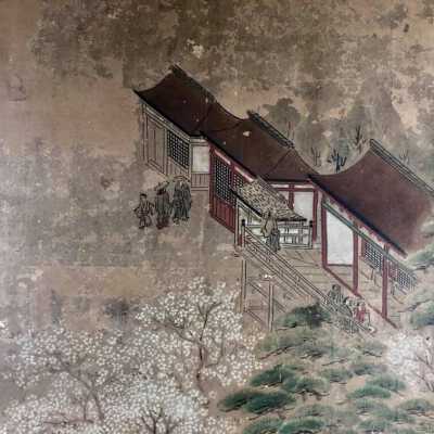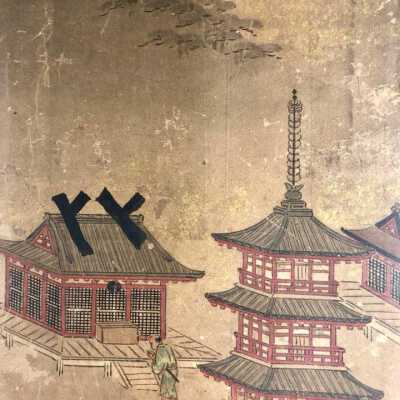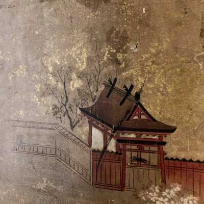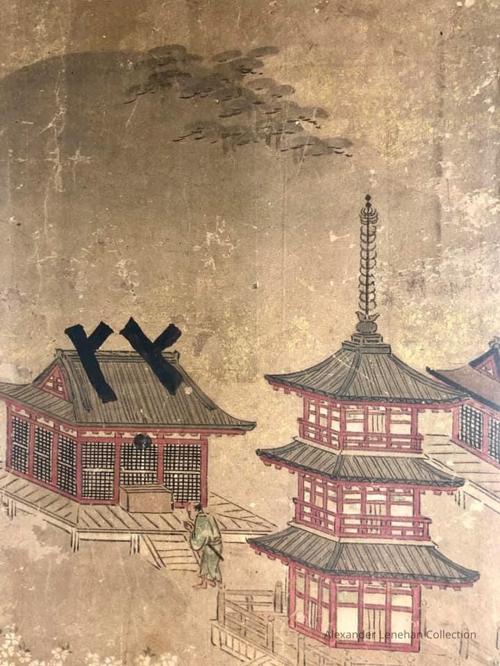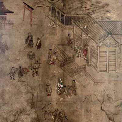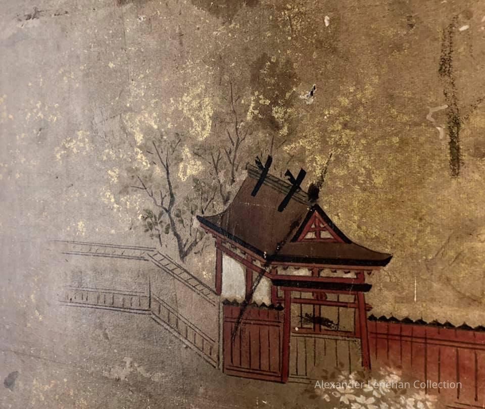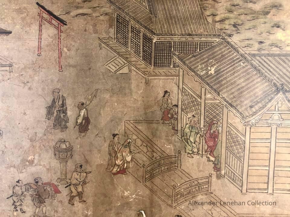 Subsidiary buildings to the east of the steep steps next to the Main Hall, with the distant view of the Otowayama Mountain in the background.