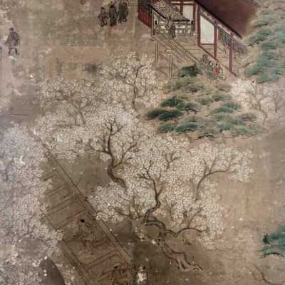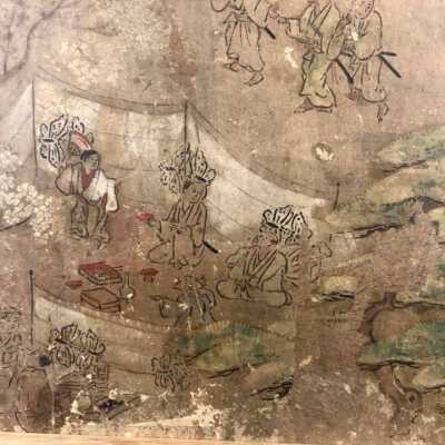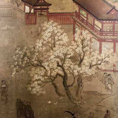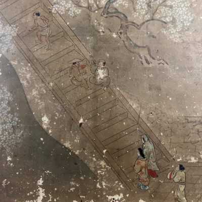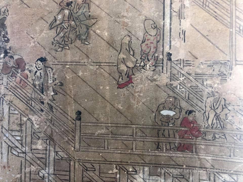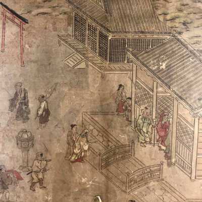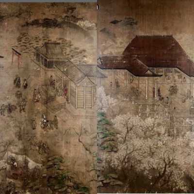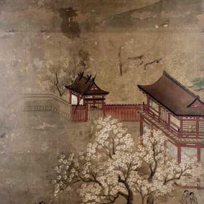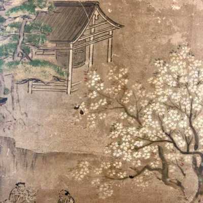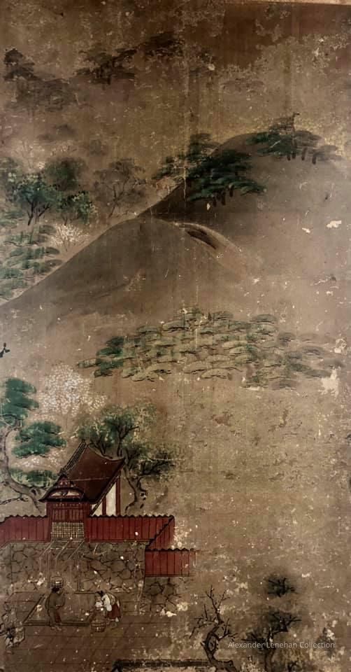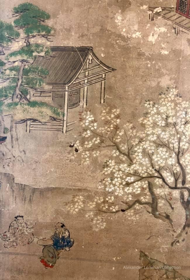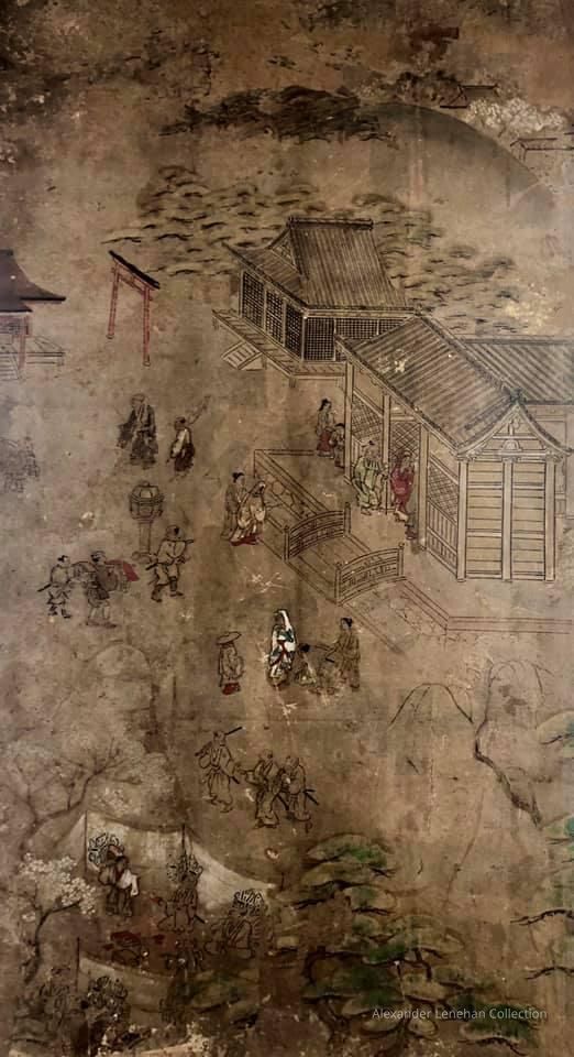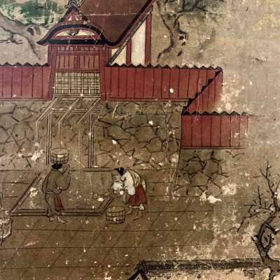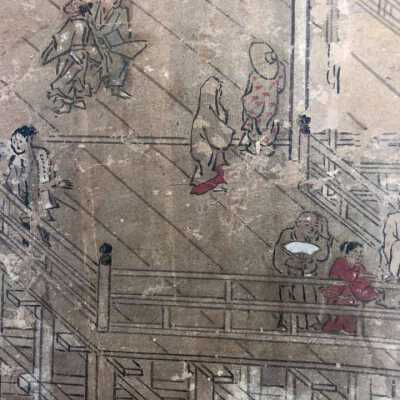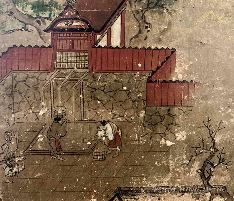 Subsidiary buildings to the east of the steep steps next to the Main Hall, with the distant view of the Otowayama Mountain in the background.