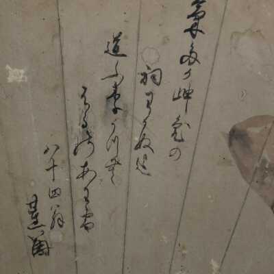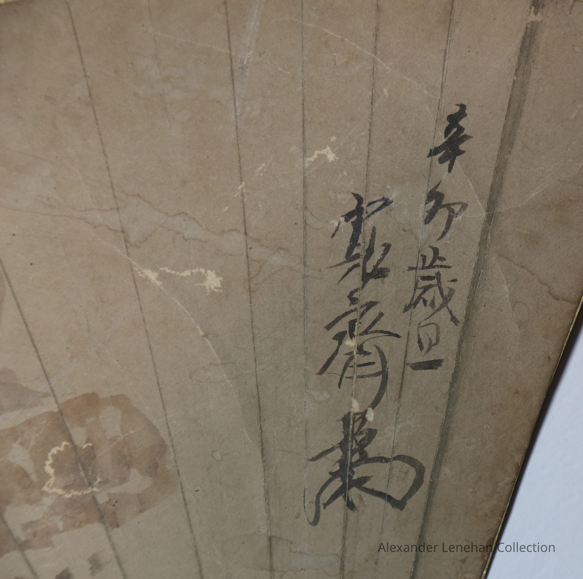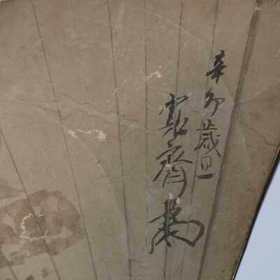 Fan depicting usu and kine (mortar and pestle used for pounding mochi)Artwork Details