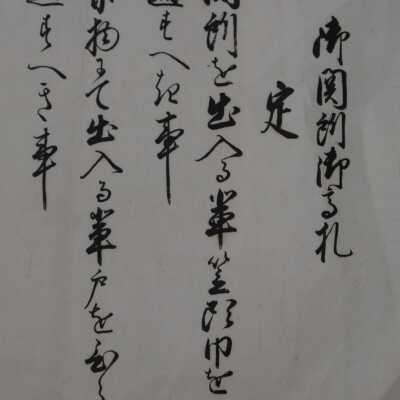 Item one. This relates to women passing through sekisho. (I cannot figure out fine details.)