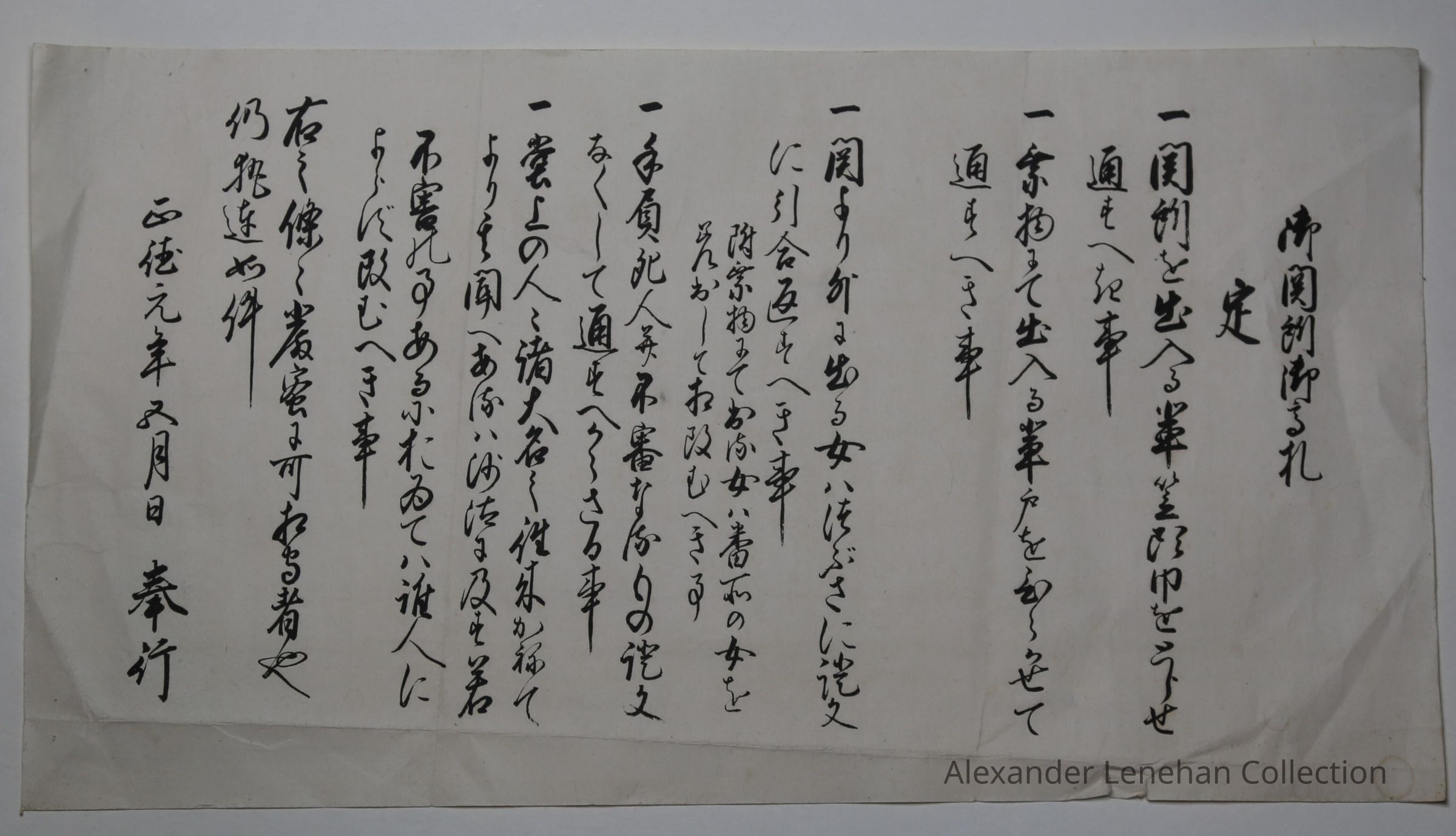 This is a document concerning five rules for passing checkpoints (sekisho 関所):