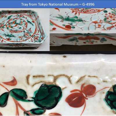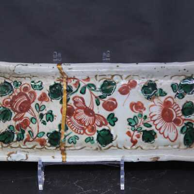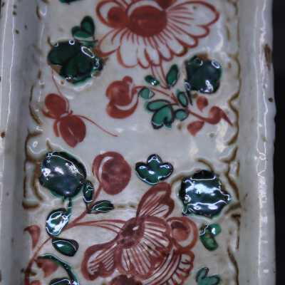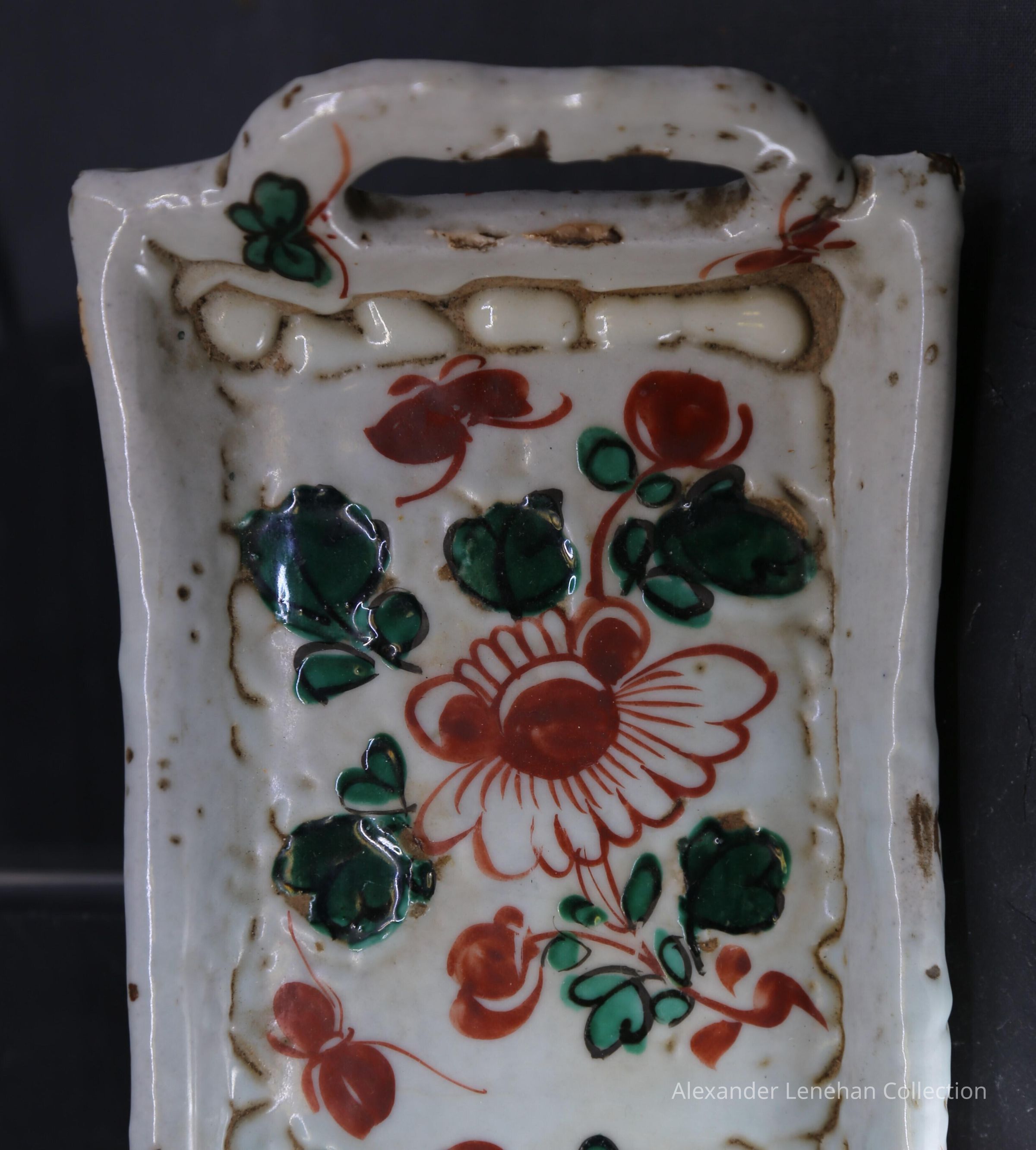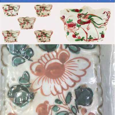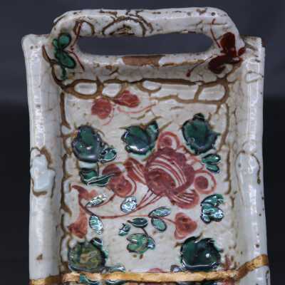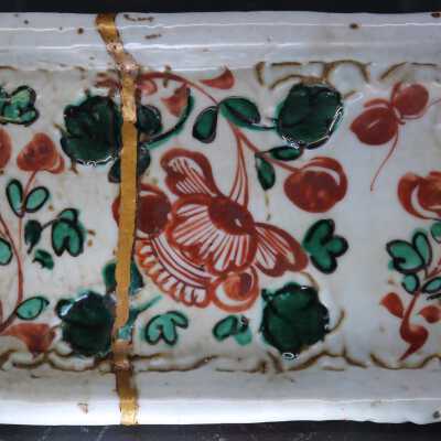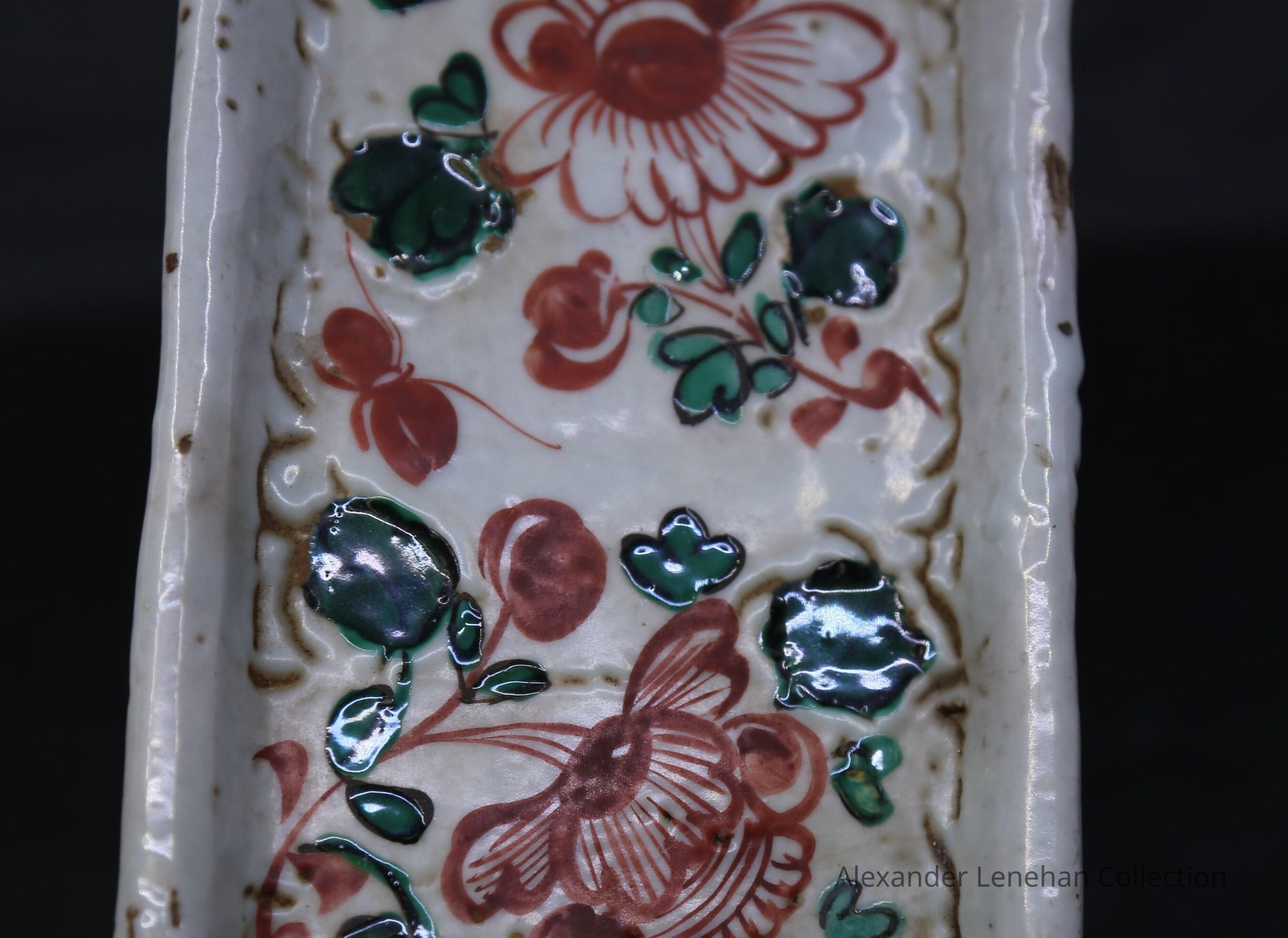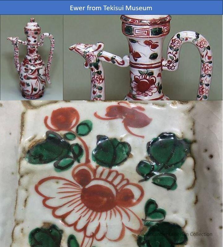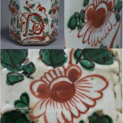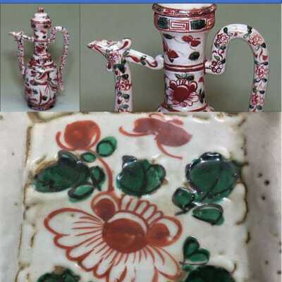 Dark buff with white glaze. Green and Red aka-e decorationCondition