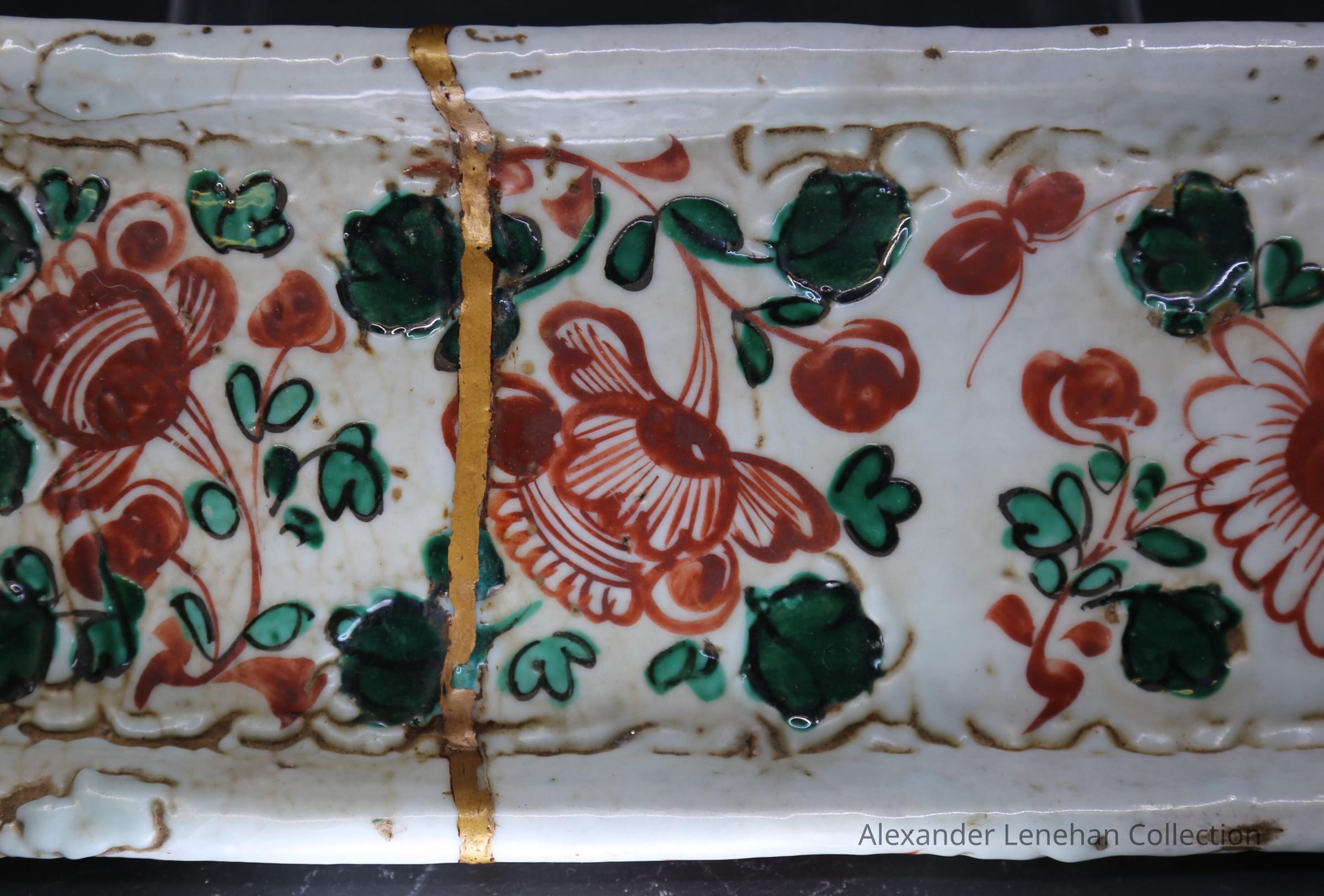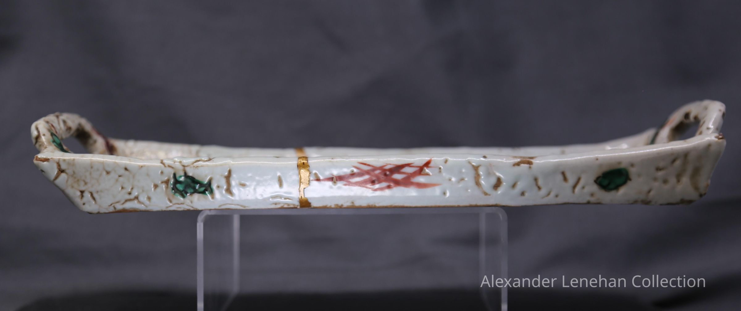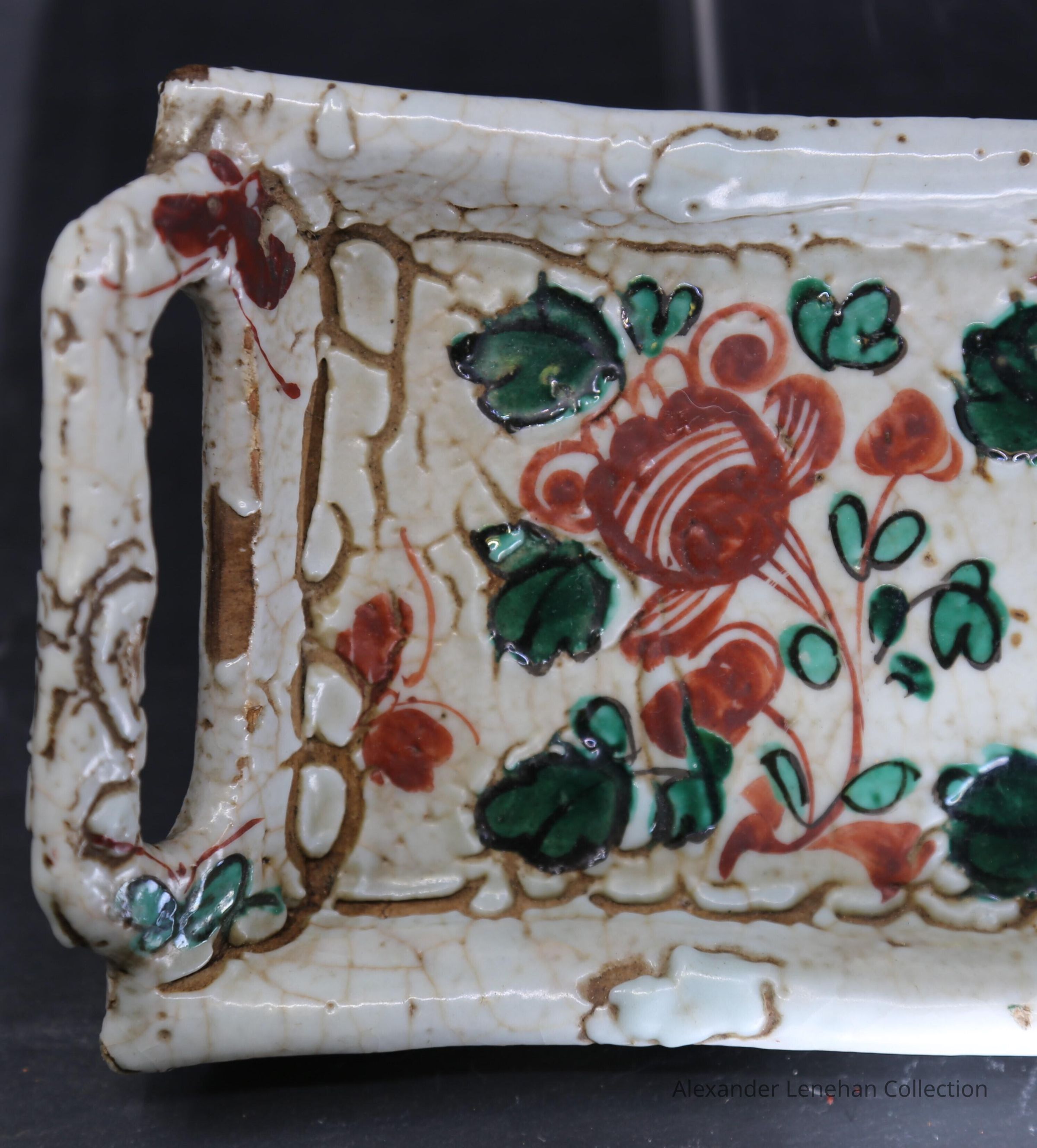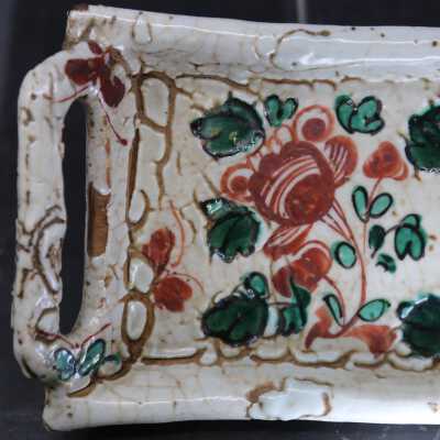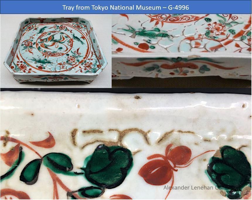Dark buff with white glaze. Green and Red aka-e decorationCondition