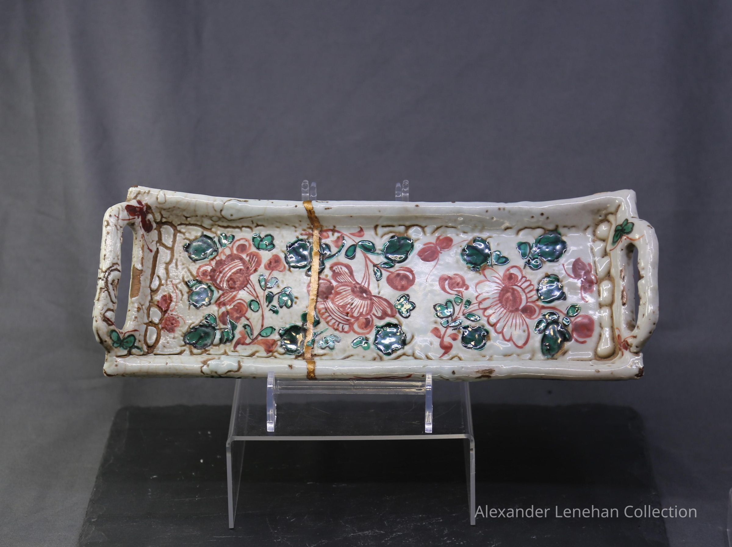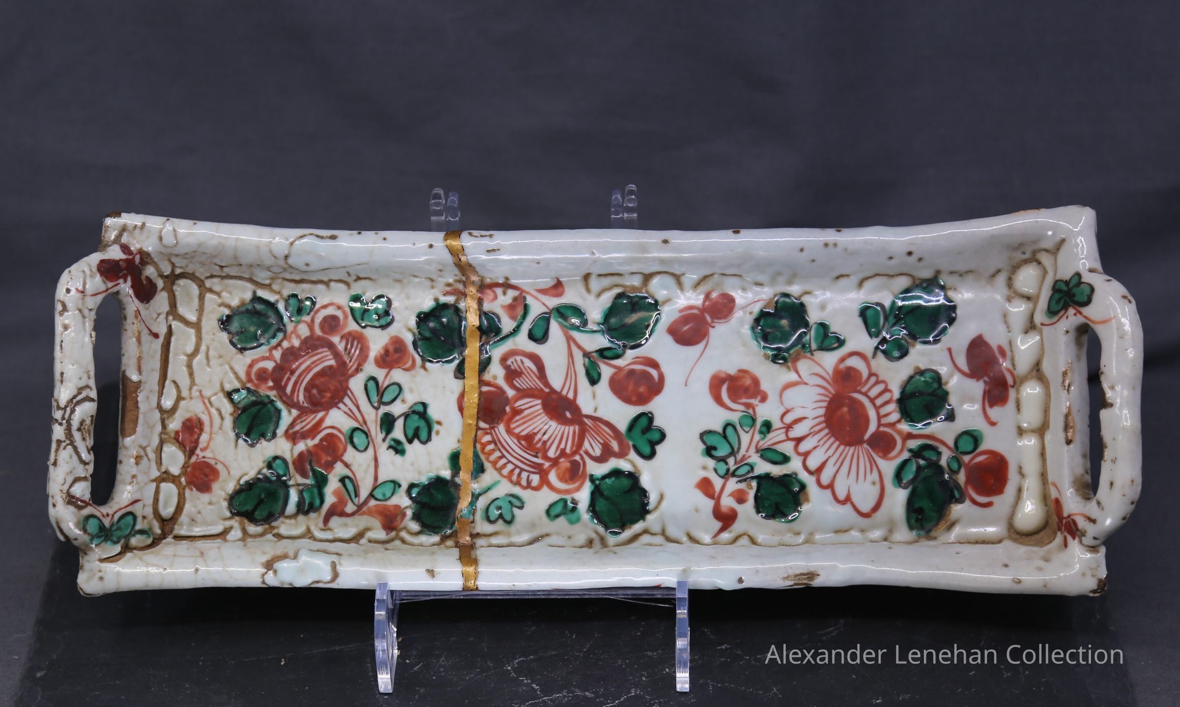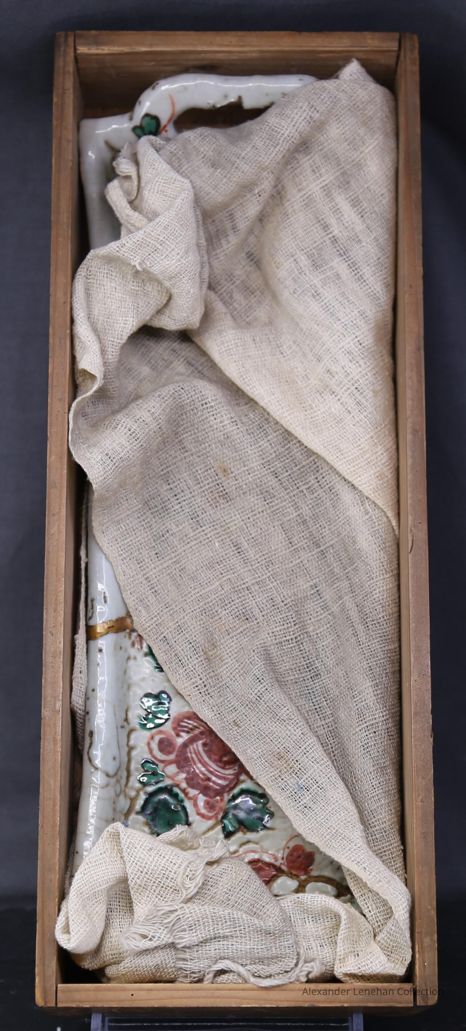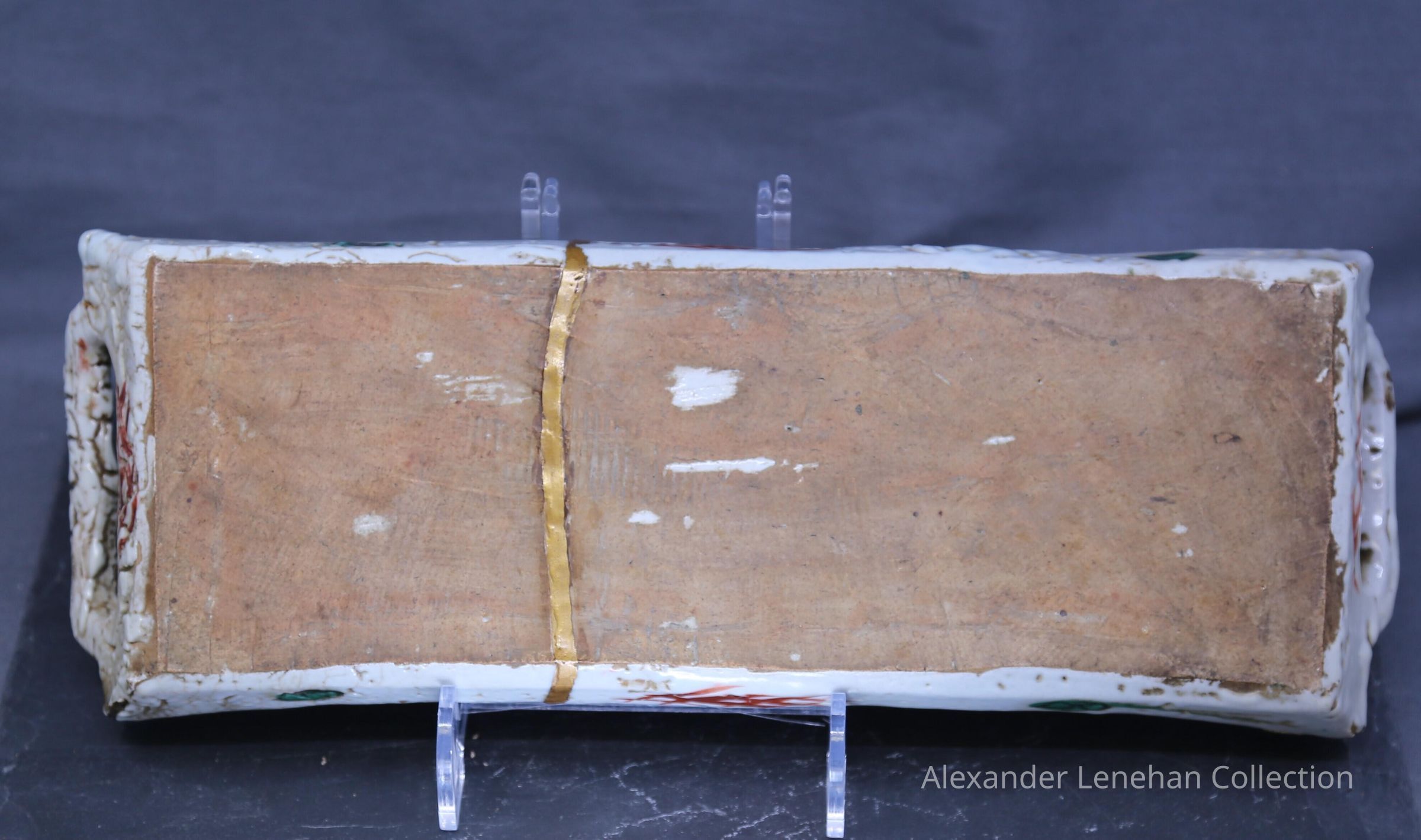 Dark buff with white glaze. Green and Red aka-e decorationCondition