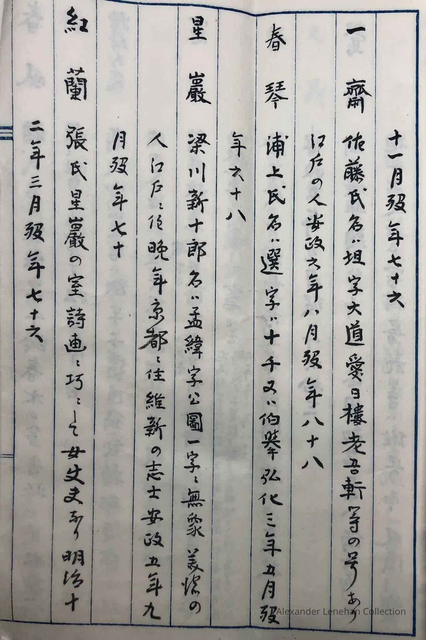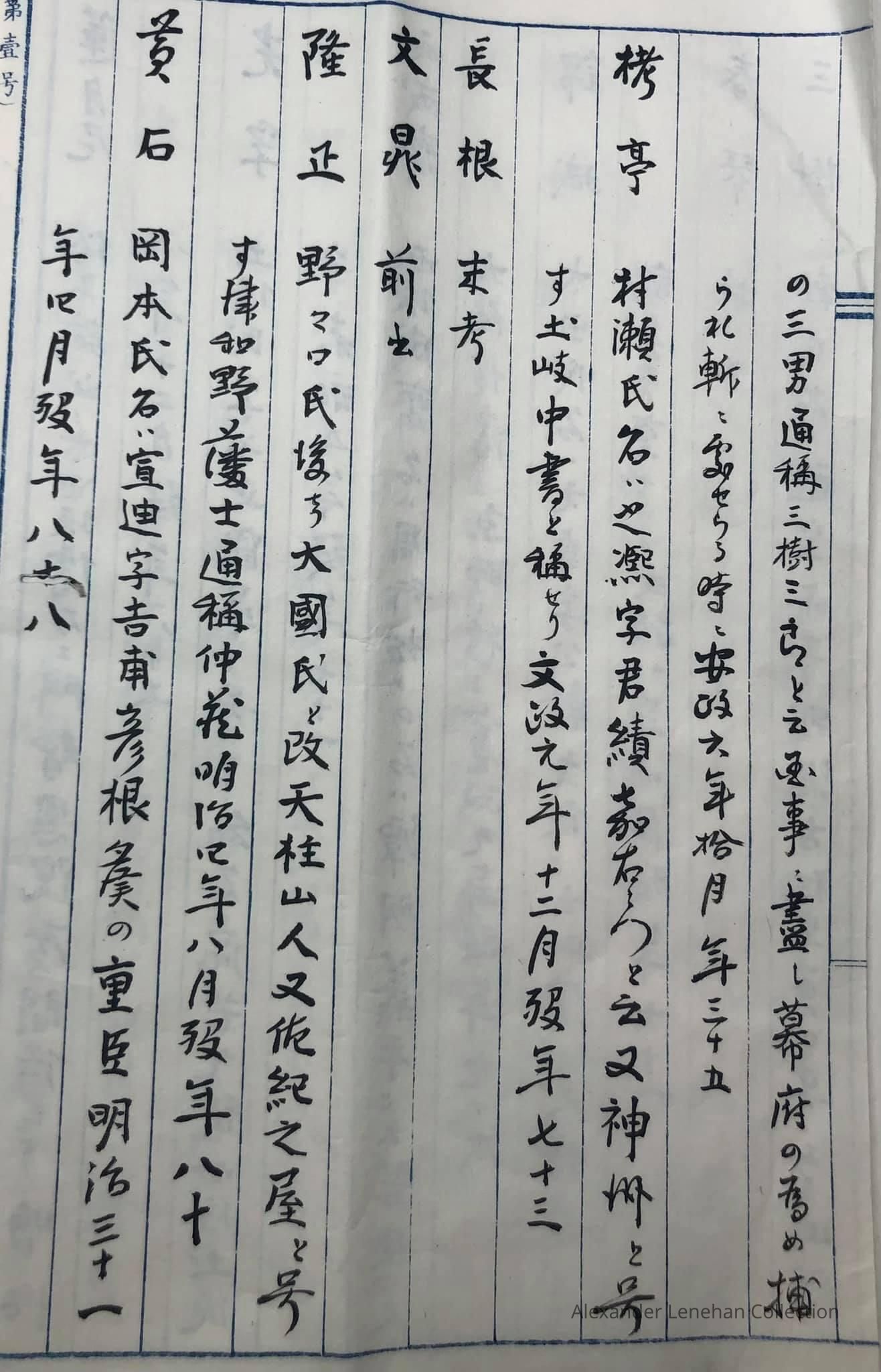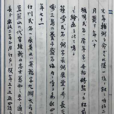 This is a list of names of eighty great houses. This list looks like a copy in the Meiji era of the Edo period original.