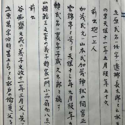> 江山翁 Kōzan-ō 常陸の人 Hitachi no hito [from the Hitachi Province (now Ibaraki Prefecture)] 江戸 (moved to) Edo 天保八年二月没す Tenpō hachinen 8th year (1837) nigatsu (February) bosu (died) 年七十一 nen shichijū'ichi (at the age of 71);