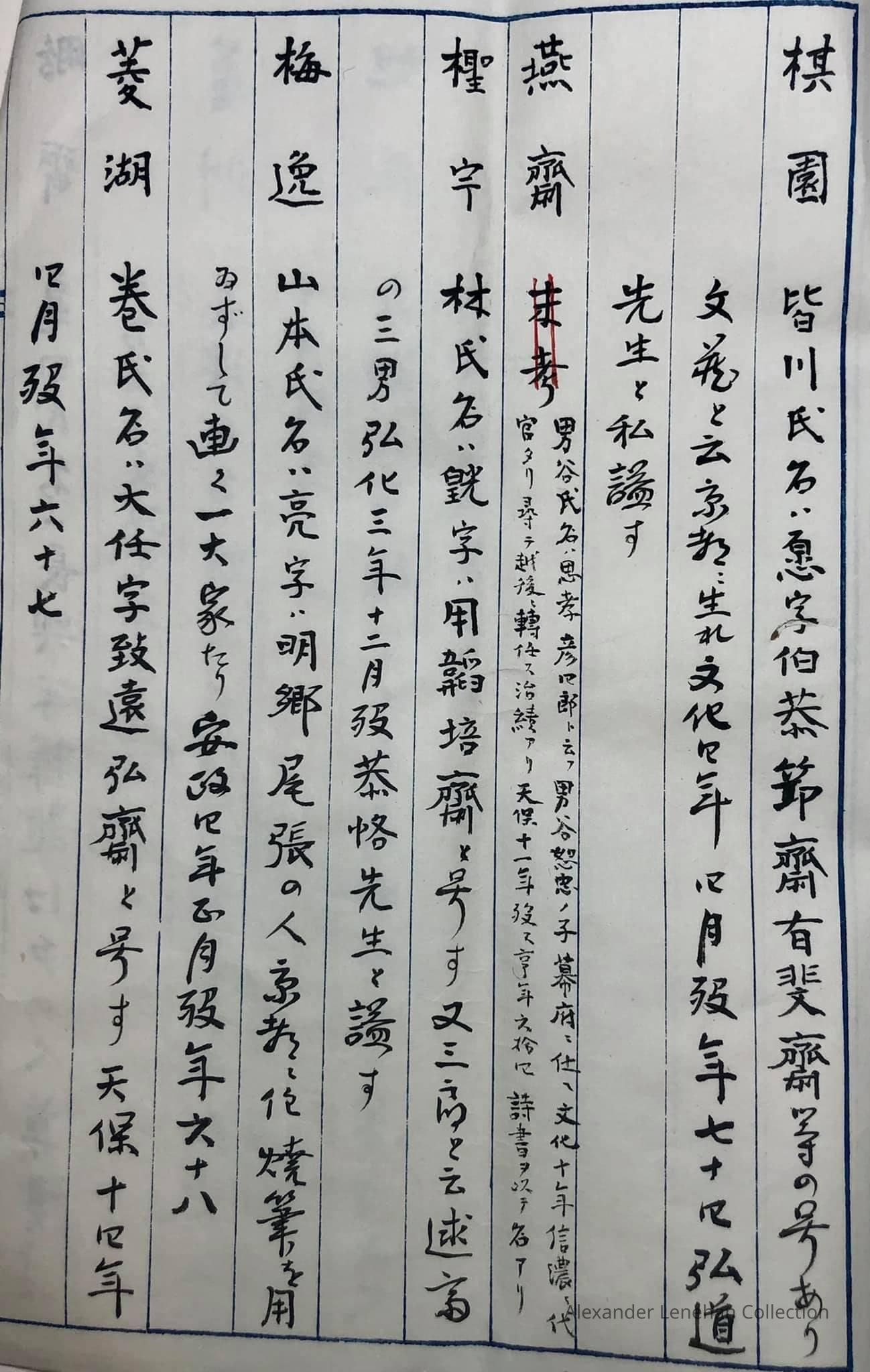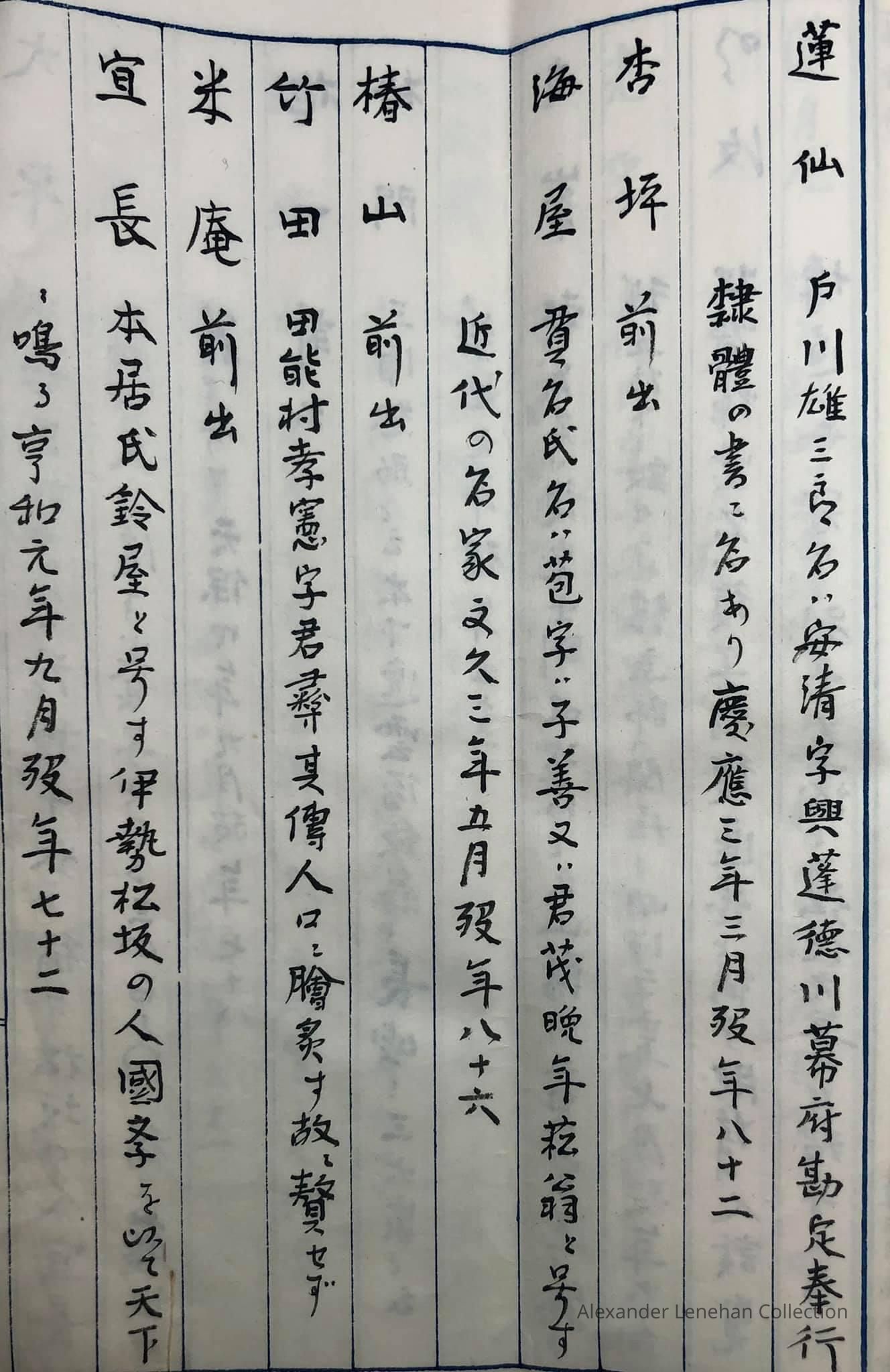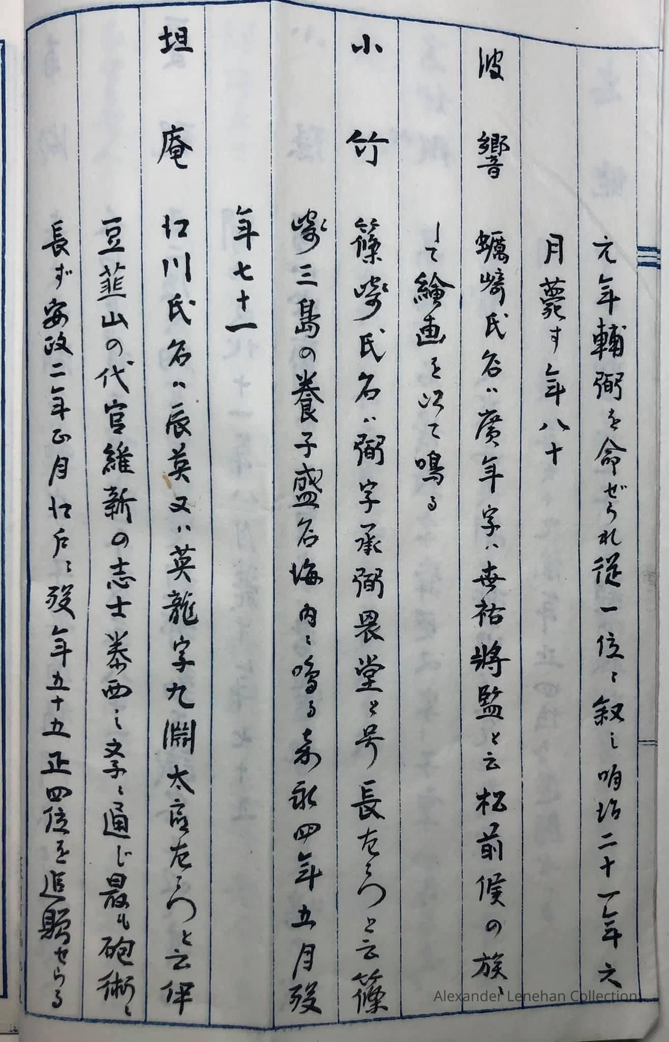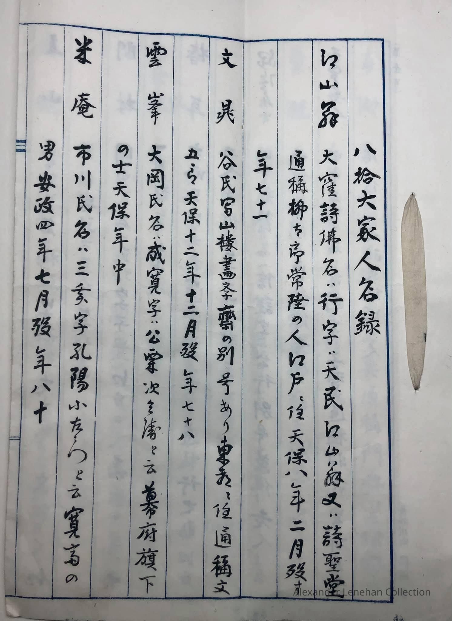 八拾大家人名録 Hachijū (Eighty) taike (great houses) jinmeiroku (name list)