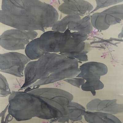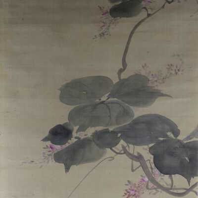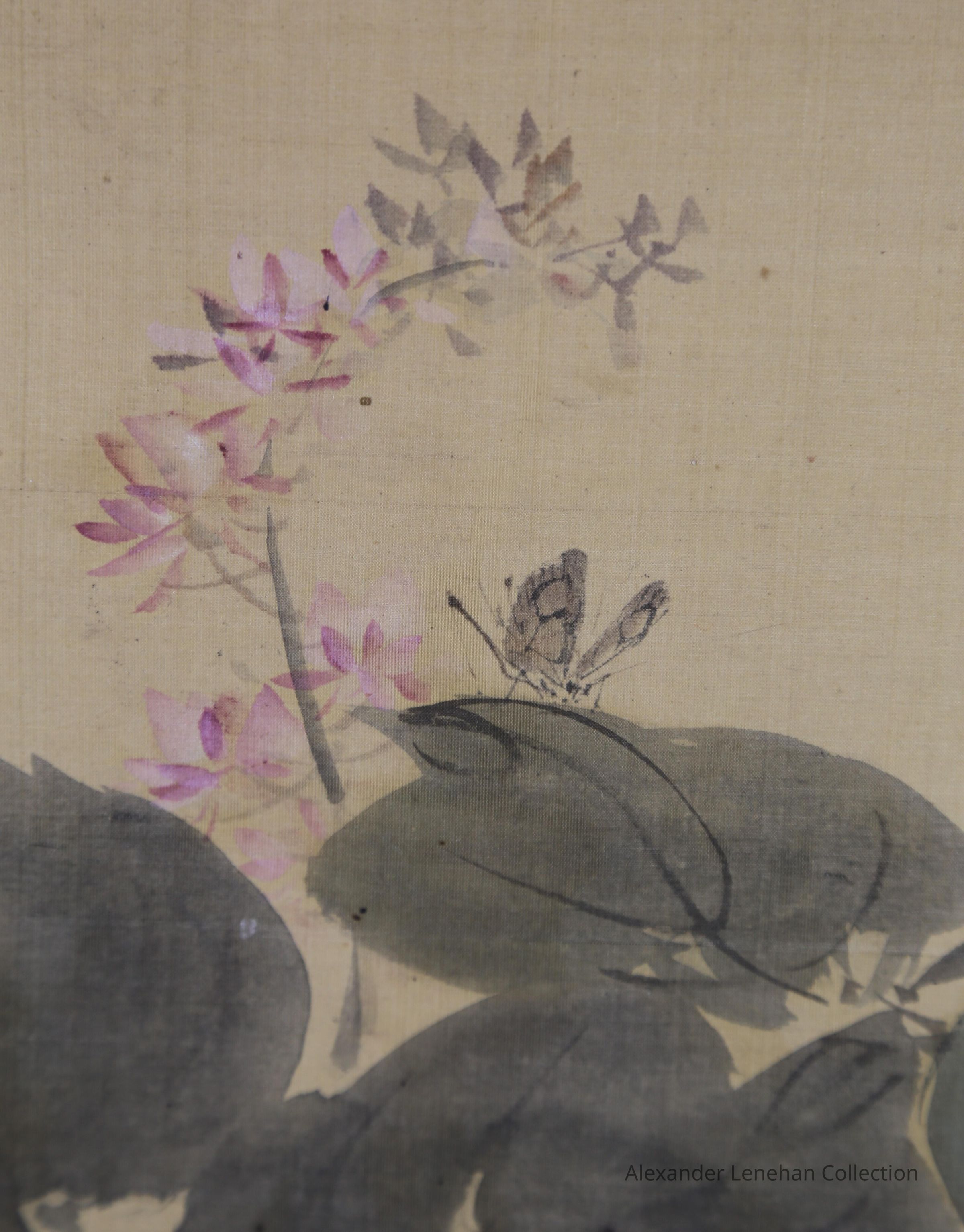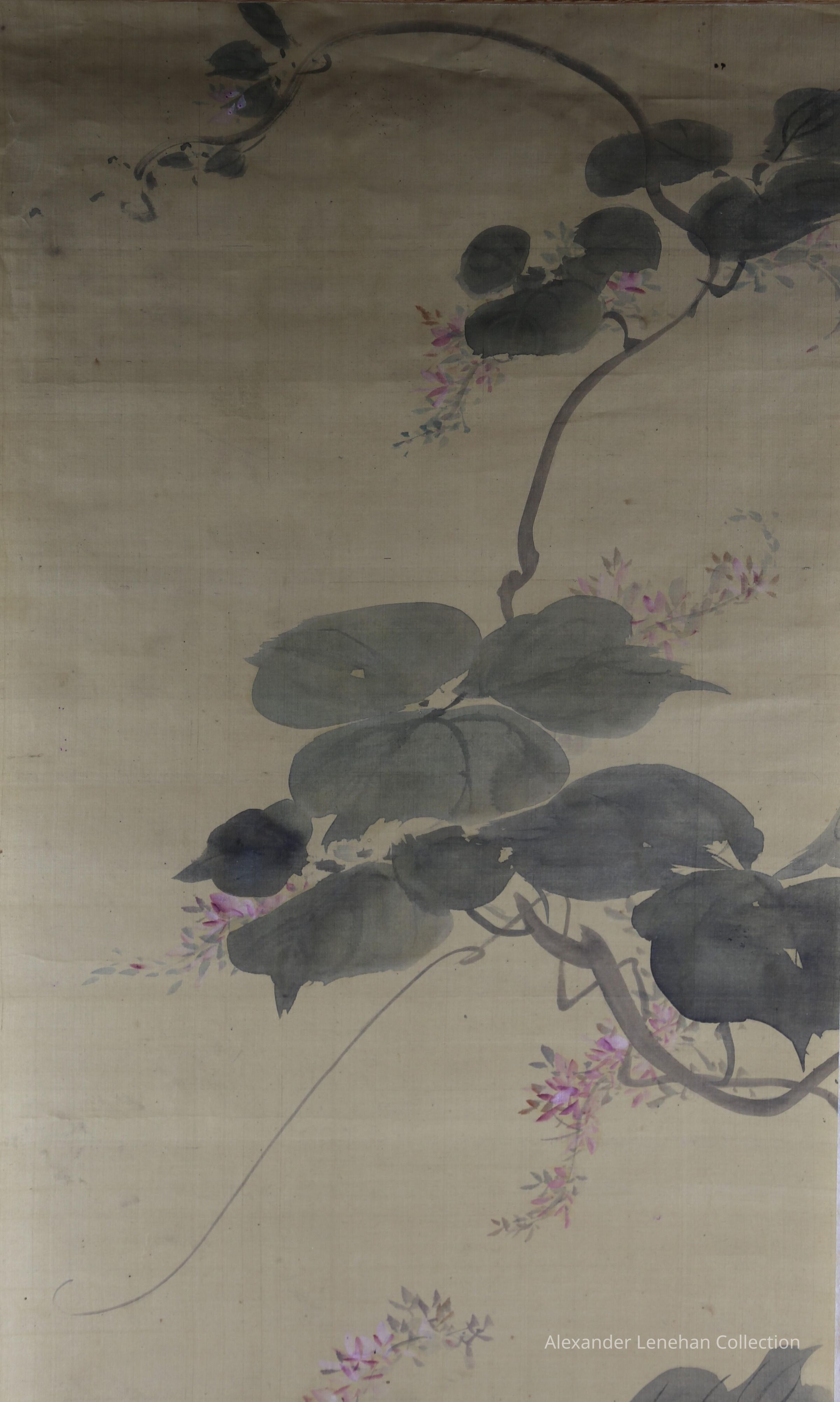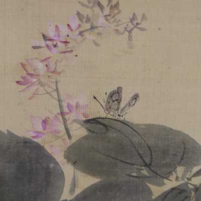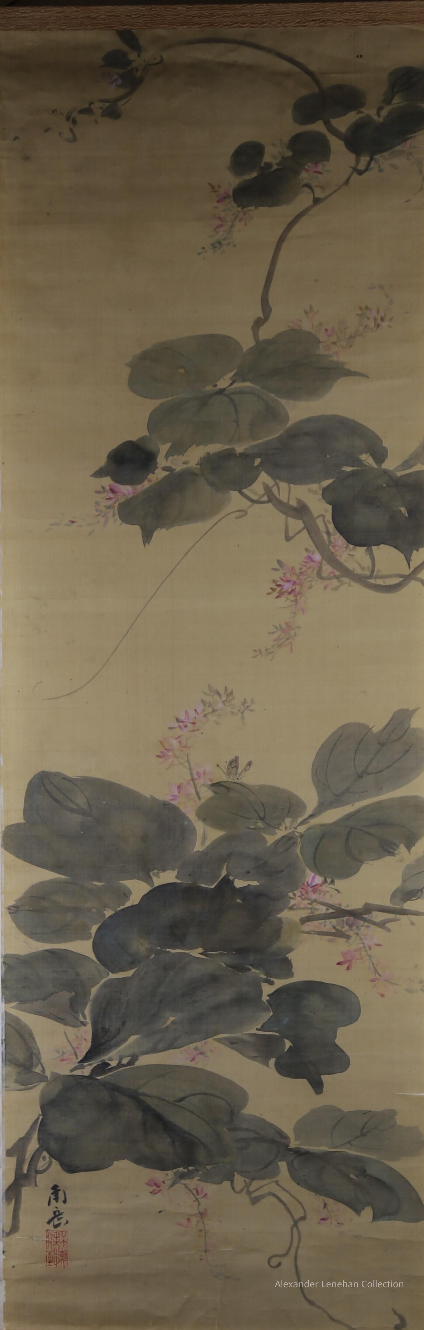 Hung scroll of vines and butterfly