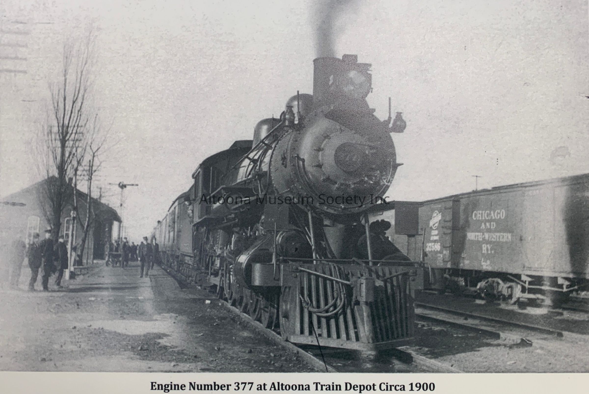 Engine Number 377 at Altoona Train Depot Circa 1900. By 1900 much of the nation's railroad system was in place. The railroad was the main factor in the settlement of the western United States. Along with the passengers, trains transported crops such as potatoes, corn, wheat and sugar beets in the early 1900's.