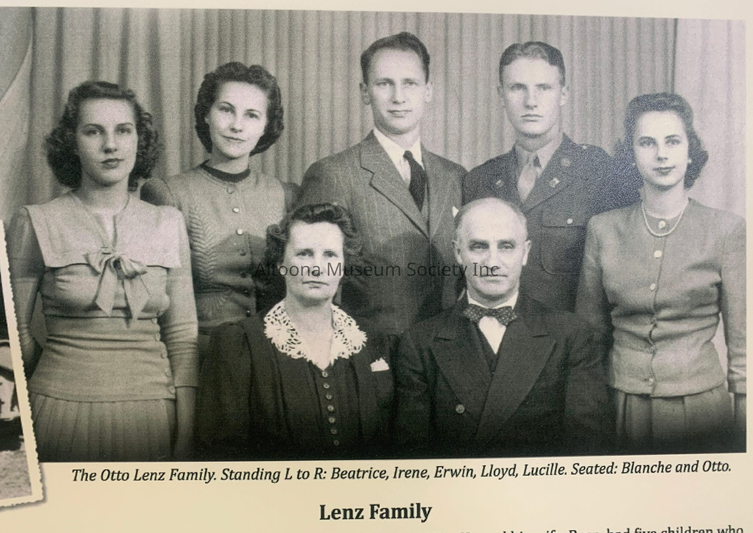 The Otto Lenz Family L to R: Beatrice, Irene, Erwin, Lloyd, Lucille. Seated: Blanch and Otto (see notes below)
