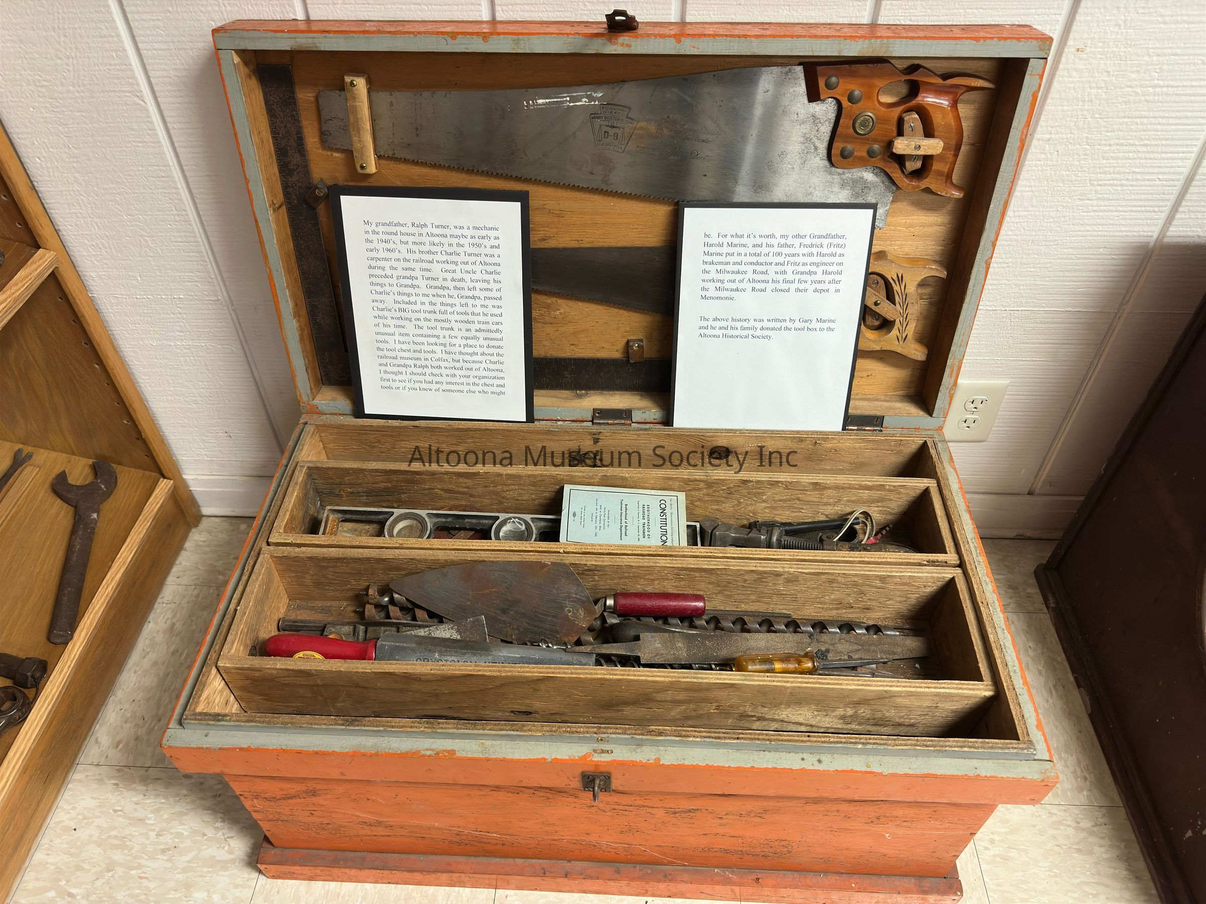 The above history was written by Gary Marine and he and his family donated the tool box to the Altoona Historical Society.Acquisition