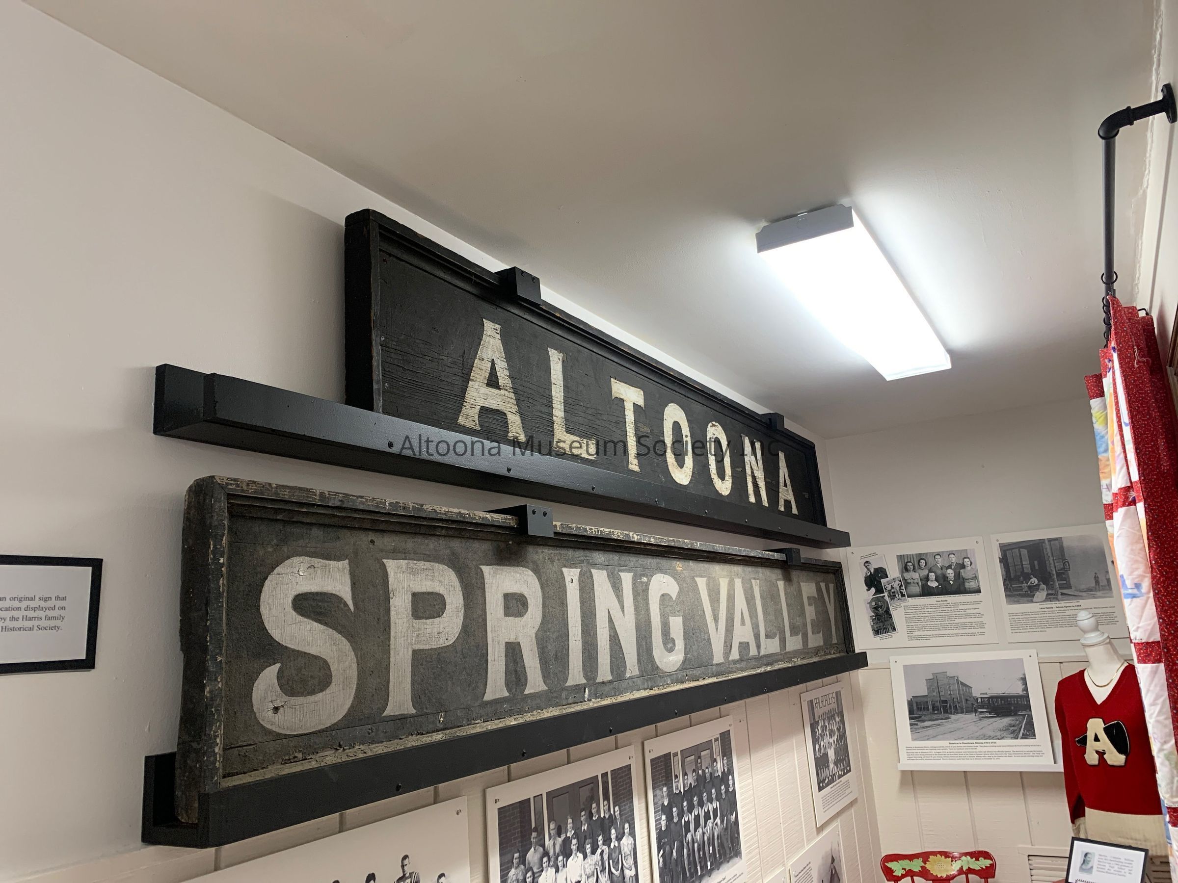 Altoona railroad depot sign from Omaha Depot (black background white letters, wood).