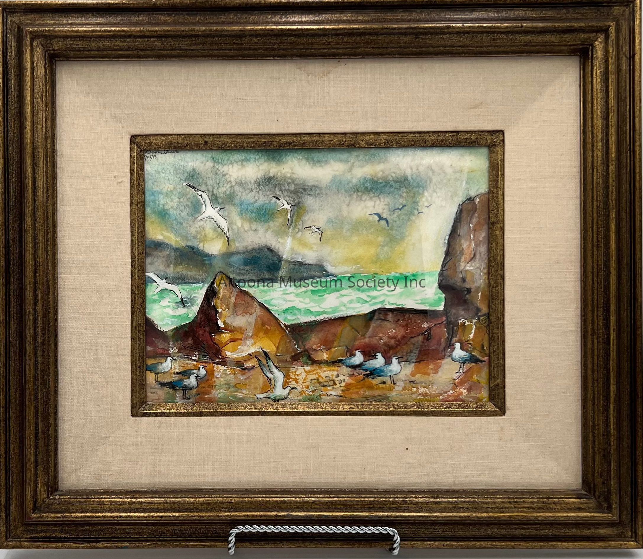 Ben Shute painted this painting and it is called Gull Cove. The painting is signed by Ben and is dated 03/23/1983. Ben was a native of Altoona and a leading artist and teacher in the southeast. Ben studied at the Art Institute in Chicago and Chicago Academy of Fine Art. Ben cofounded the Atlanta Art Institute with Robert R Rodgers which later became Atlanta College of Art. Ben gave this painting to Altoona High School who then gave it to Larry Sturz to give to AHSI.Acquisition