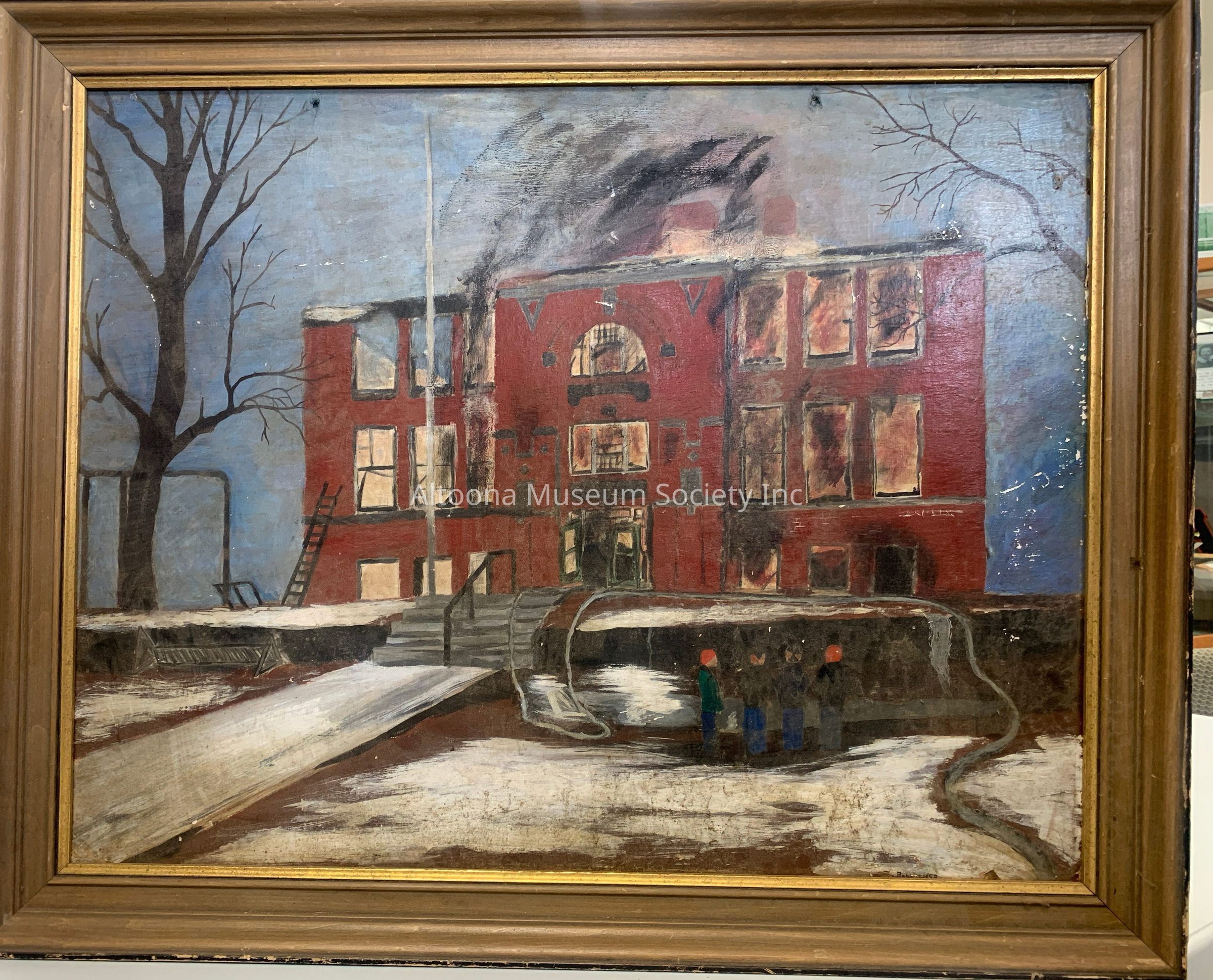 Painting of Altoona High School Fire which occurred October 31, 1951.