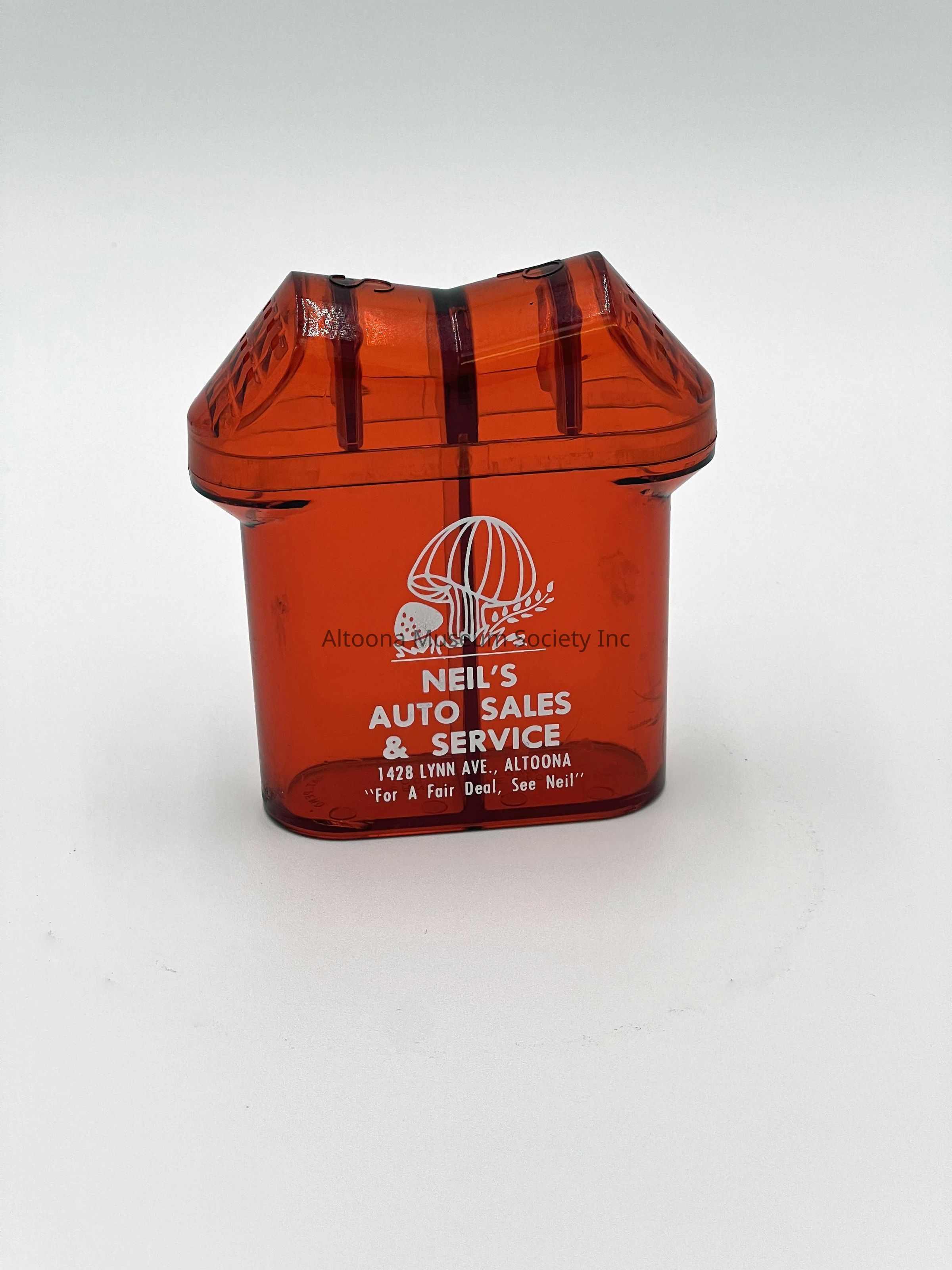 Salt & Pepper Shakers with Neil Auto Sales & Service logo on it. These salt and pepper shakers were created by the Vernon Co. in Newton, Iowa and sold as promotional items to various companies.Acquisition