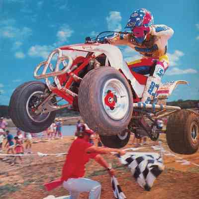 Gary Denton was the dominant ATV racer the ’80s and ’90s, winning eight AMA ATV Grand National Championship titles from 1987 through 1994. Before racing ATVs, Denton started his motorcycle racing career at age 14 and went pro at age 16, getting his first major title at the CMC Night Nationals in the 125cc class in 1976. From late 1978 to 1982, he raced professionally, with a best finish of fourth in the 125 National class and scoring 13 top-10 finishes. After racing locally for a couple years, he had the opportunity to begin racing ATVs in 1985, getting a factory ride with Suzuki in 1987 to race in the AMA ATV Grand National Championship. From that point on he dominated the series, winning the championship eight years in a row.