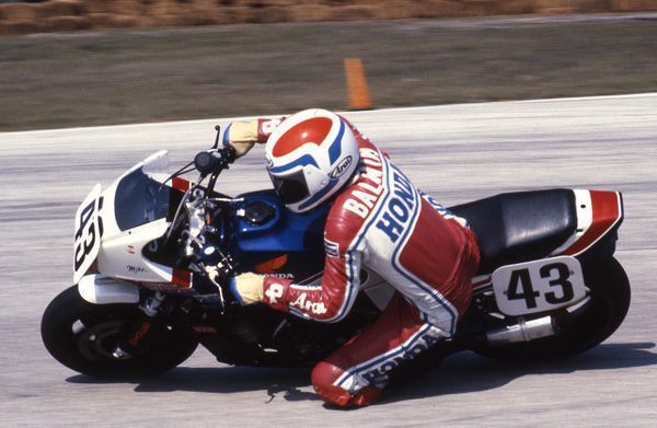In 1982, Baldwin came back to America, now fully healthy, and began a four-year reign atop the AMA Formula 1 road racing class. He stacked up wins during this period, eventually making him the all-time wins leader of the class. Baldwin won the 1982, ’83, ’84 and ’85 AMA Formula 1 Championships. He won the 1982 championship on the revolutionary Honda FWS1000 V-Four, giving Honda the distinction of becoming the first manufacturer to win the AMA Formula 1 title with a four-stroke-powered machine.