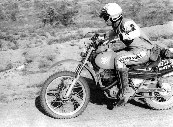 Bishop rode many of the major off-road races of his era. The Greenhorn Enduro, Barstow to Vegas and the grueling long-distance races such as the Mint 400 and the Baja 1000. Bishop became one of the leading off-road racers on the West Coast, but he wanted to prove himself among the best in the country. In the early-to-mid-1970s, the opportunity to show his skills outside of the West came in the form of ISDT qualifiers held throughout the country. Bishop earned a factory Kawasaki ride in 1973. It was a plush life by the normally low-dollar standards of off-road racers. Bishop flew to the races, stayed in nice hotels and had mechanics looking after his motorcycles. Off-road racing legend Walt Axthelm was the team’s manager.