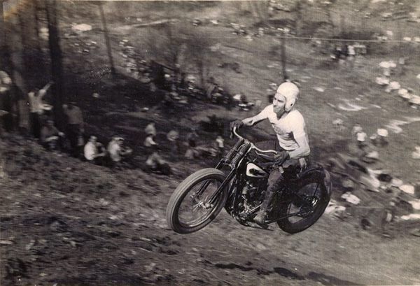Red Bryan was one of the leading AMA National Hillclimbers of the 1930s to the 1950s. Bryan won eight AMA Hillclimb National Championships starting in 1938 and going through 1951, when he earned his final national title. He won his early championships during hillclimbing’s golden era of the 1930s, riding homebuilt Indians. He later became a Harley-Davidson factory-backed rider. He won on Muskegon, Michigan’s famous Mount Garfield hill against top climbers such Joe Petrali, Howard Mitzell and Windy Lindstrom. Bryan had a long and successful run in AMA National Hillclimbs and turned in some of his finest performances later in his career, winning in dominating fashion into his 40s.