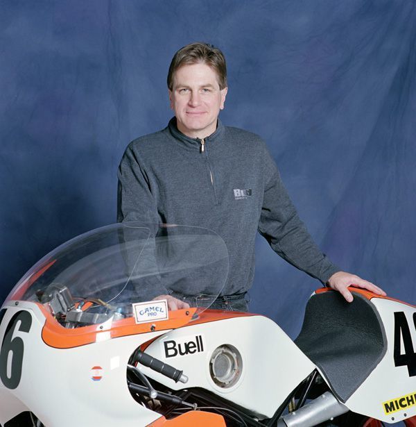 Erik Buell is the founder of the Buell Motorcycle Company. A national AMA road racer and a chassis engineer for Harley-Davidson, Buell left Harley in 1982 to pursue his dream of building his own racing motorcycle. His first bike was a two-stroke AMA Formula One racer called the RW750 that he completed in 1983. When the AMA dropped the Formula One road racing class Buell turned his attention to building the first world-class sportbike designed and built in America. That led to the production of the Buell RR1000, utilizing a Harley-Davidson engine. Buell’s small company expanded to a major manufacturer when Harley-Davidson bought into Buell in 1994.