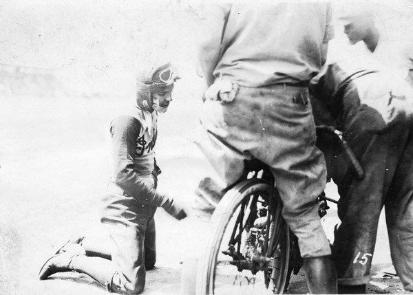 For the next several seasons, Burns continued to race in his home state and steadily earned a following of loyal fans. One reason the fans loved Burns so much was because of his toughness. In a Marysville, California race, Burns suffered a hard tumble. Groggy from the accident, he hobbled to the pits and put his machine back together in time for the next race. Riding in agonizing pain, Burns went on to win the five-mile final to the roar of the crowd. His friends insisted that Burns be checked by a doctor after the race and it was discovered that he had ridden with a fractured collarbone and broken shoulder.