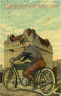 Jake De Rosier is considered to be one of the very first factory-backed motorcycle racers. The great racing champion of the first decade of the 20th century rode for Indian Motocycle (and later Excelsior) and was the fastest rider in the United States in the early 1900s. His name was synonymous with motorcycle racing during the first decade of the sport.