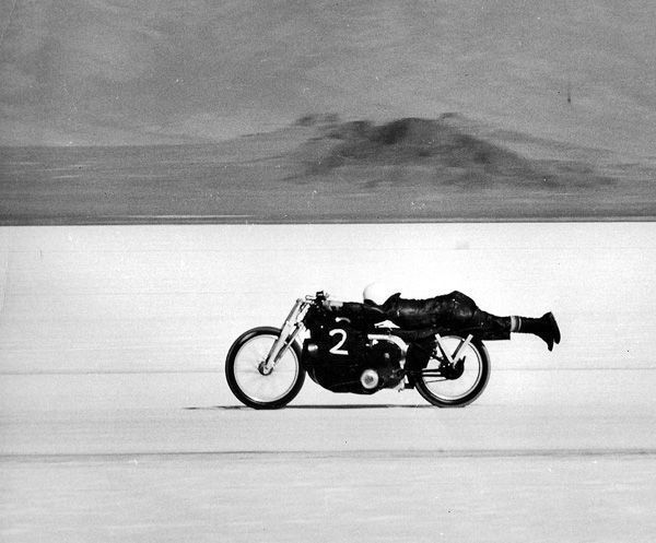 A year earlier, Dickerson rode to Utah to help the legendary Rollie Free in his speed runs at Bonneville. While there, he caught the speed trial bug. The ride home from Utah would be the last street miles his beloved Vincent would see.