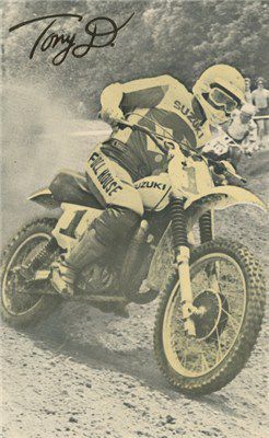 DiStefano continued on the factory Suzuki team and the ’77 season was another good one. He won the final three 250 outdoor nationals to wrap up his third straight title. By this time, DiStefano’s popularity was such that he had a line of off-road apparel bearing the name of "Tony D."