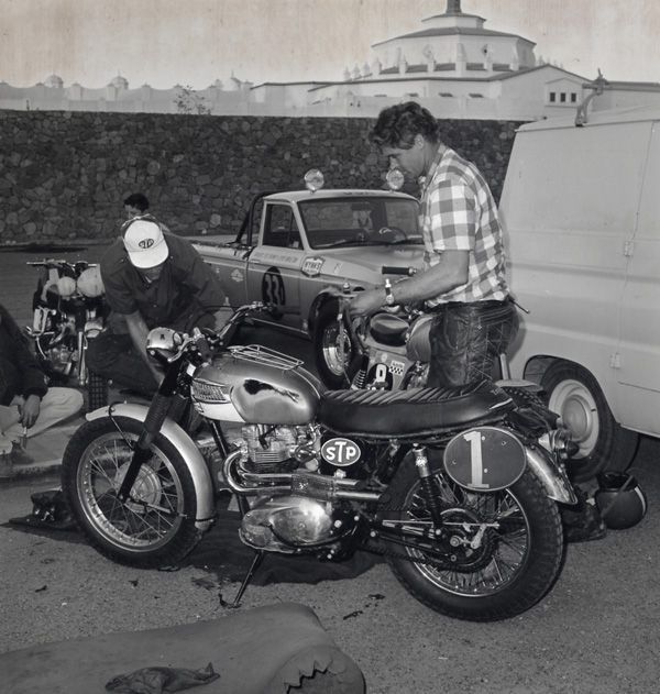 His European racing experiences sharpened Ekins’ skills considerably and he began winning domestic races with seeming ease. In 1955, Ekins was victorious in the Catalina Grand Prix, one of the most prestigious races in the country. Riding a Johnson Motors Triumph, Ekins sliced almost 10 minutes off the old record for the race. He also won the Big Bear Run three times during the 1950s, including the 1959 victory in which he completed the 153-mile course over half an hour ahead of the second-place rider, despite suffering a flat tire and breaking a wheel. For a period during the late-‘50s and early-‘60s, Ekins was easily the most dominant racer in desert events. Ekins was a founder of the famous Baja 1000, making record runs down the Mexican peninsula in the early-1960s.